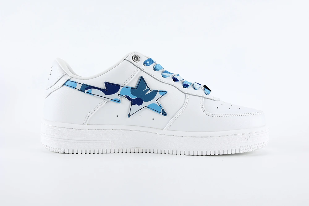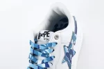 The A Bathing Ape Bape Sta Low ABC Camo White Blue 2022 is crafted from shiny patent leather, which adds a sleek and polished look to the sneaker. Its accented tongue labels and the legendary BAPE emblem further enhance its appeal, making it instantly recognizable among streetwear aficionados. Since its official market launch, this sneaker has attracted attention for its unique blend of bold design and high-quality materials. The ABC CAMO pattern, a signature of BAPE, is prominently featured on the STA logo and laces, reinforcing the brand’s identity and connection to Japanese street culture. This release is a testament to BAPE’s ability to innovate while staying true to its underground Harajuku roots. Whether styled casually or as part of a more fashion-forward ensemble, the Bape Sta Low ABC Camo White Blue 2022 offers a versatile and stylish option for sneaker collectors and fashion enthusiasts alike.
