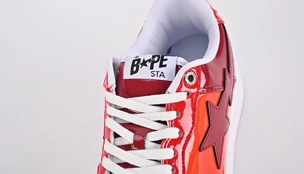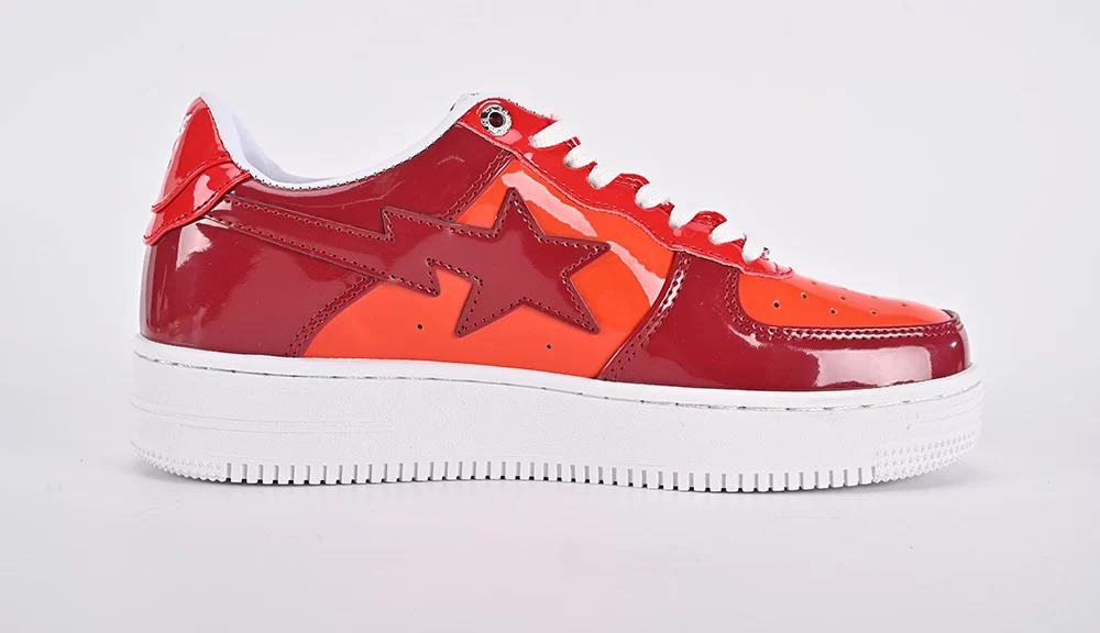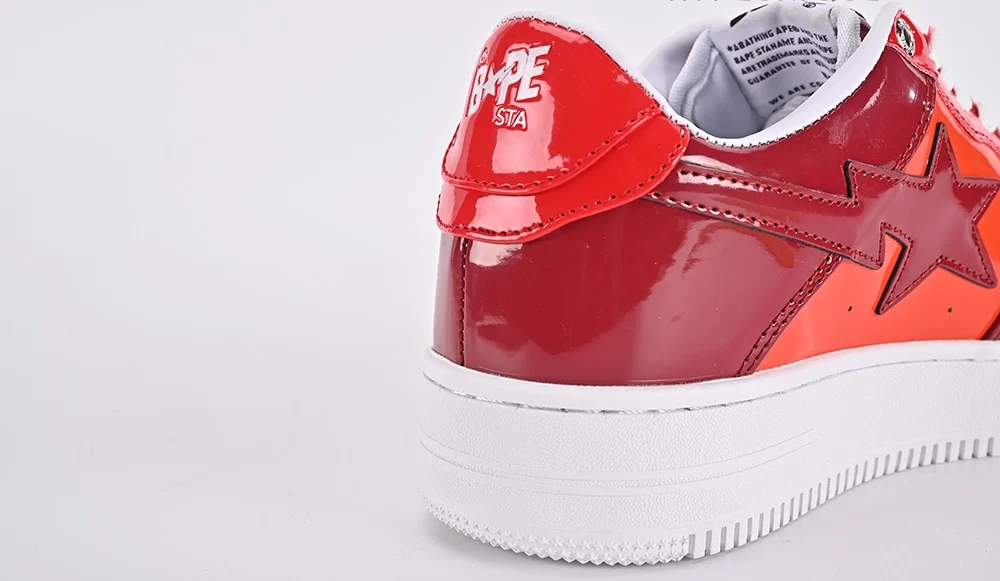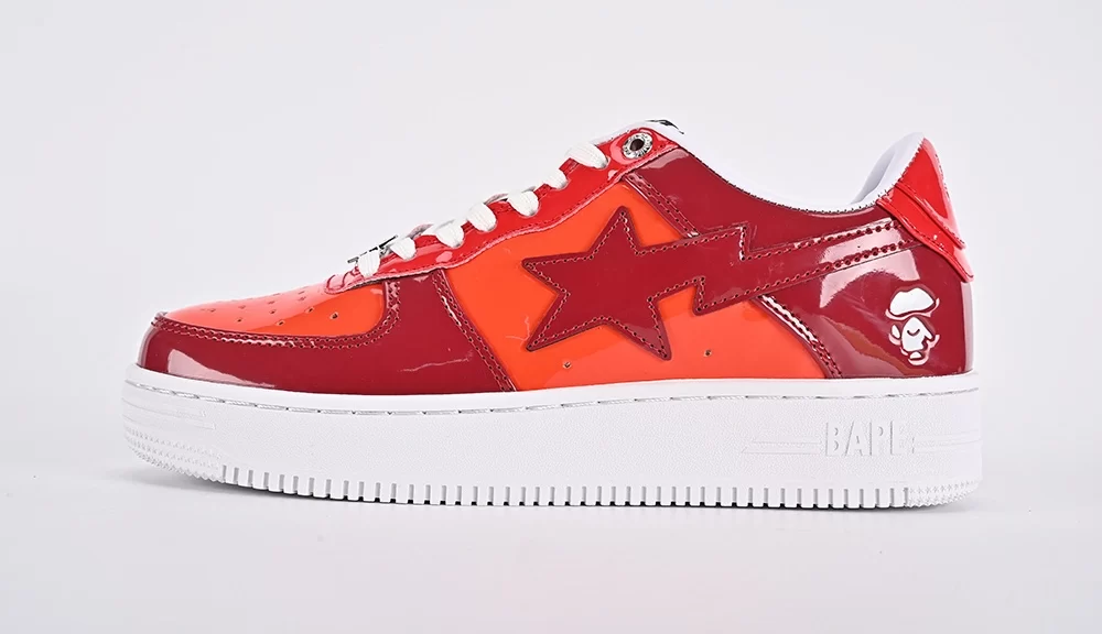 The BAPE STA Color Camo Combo collection, launched in 2021, includes a variety of colorways beyond the striking red, such as black, blue, green, purple, and pink. Each pair features the signature patent leather construction that highlights the upper, heel, and logo, ensuring durability and a premium look. The collection caters to diverse style preferences, from muted tones to vivid hues, allowing wearers to express their individuality. The APE HEAD motif on the rear quarter panel adds a unique branding touch that fans of the brand recognize instantly. These sneakers are not only fashionable but also embody the streetwear legacy of A Bathing Ape, a brand established in 1993 known for its iconic camo patterns and bold designs. Whether for casual wear or making a fashion statement, the BAPE STA Color Camo Combo series offers versatile options that resonate with sneakerheads and streetwear aficionados.