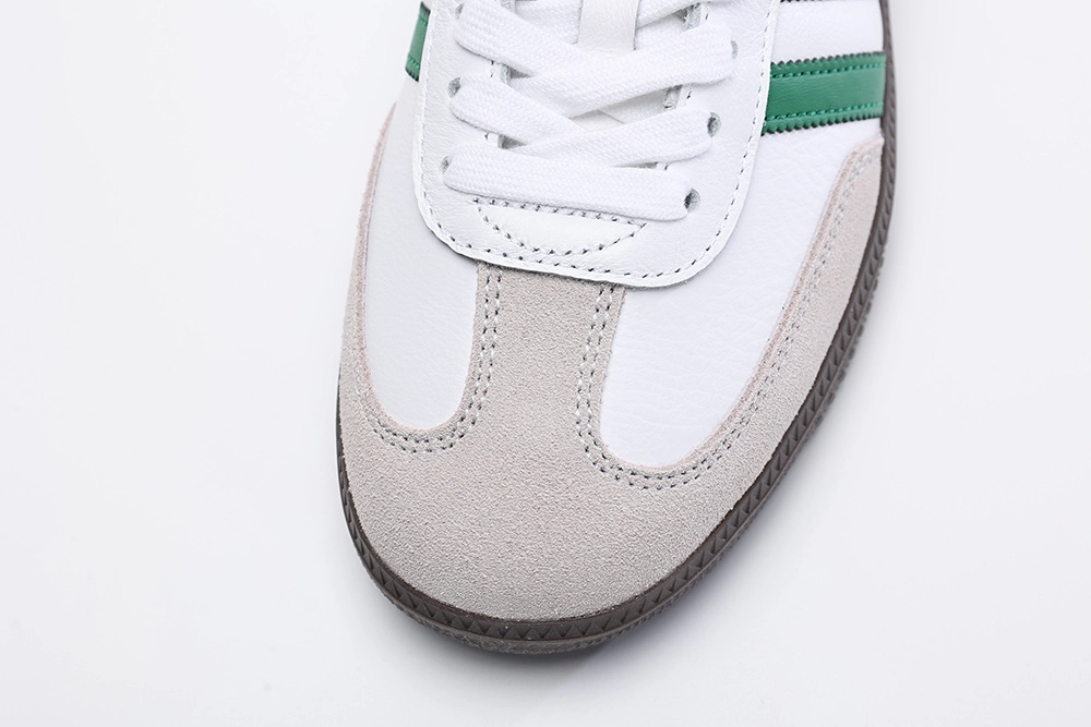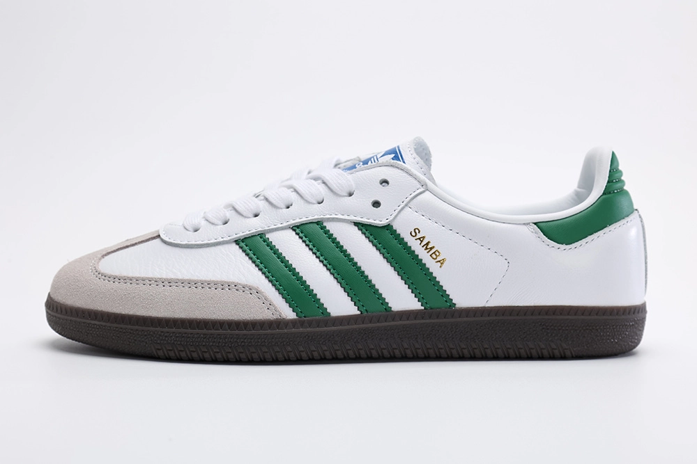 The adidas Samba OG footwear white green reps is a timeless classic that blends heritage style with modern comfort. Featuring a clean white leather upper accented by college green details, this sneaker pays homage to the original Samba design first introduced in 1949. The shoes premium leather construction ensures durability, while the rubber sole provides excellent grip and traction. With its low-profile silhouette and iconic three-stripe branding, the adidas Samba OG footwear white green is perfect for both casual wear and light athletic use. This model retains the vintage charm of the original Samba while incorporating subtle updates for enhanced comfort and style. Whether on the streets or in your sneaker collection, the adidas Samba OG footwear white green stands out as a versatile and stylish choice. Experience the legacy of adidas with this iconic sneaker that combines history and contemporary appeal, making the adidas Samba OG footwear white green a must-have for sneaker enthusiasts.