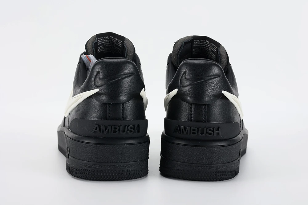 The Air Force 1 Ambush Black is a standout collaboration between Nike and designer Yoon Ahn’s AMBUSH brand, released on February 28, 2023. This sneaker features a sleek black leather upper paired with an oversized white rubber Swoosh, creating a bold contrast that defines its aesthetic. The design includes signature AMBUSH branding on the tongue tags, heel counters, and outsole, along with unique 3D “AF-1” lace dubraes that add a distinctive touch. Crafted with lightly tumbled leather, the Air Force 1 Ambush Black blends premium materials with innovative design elements, making it a modern reinterpretation of the classic Air Force 1 silhouette. Priced at $190, this model is a must-have for collectors and sneaker enthusiasts seeking a fusion of streetwear and high fashion. The Air Force 1 Ambush Black perfectly balances heritage and contemporary style, embodying the spirit of both Nike and AMBUSH in one iconic shoe. The Air Force 1 Ambush Black remains a top choice for those who appreciate bold design and quality craftsmanship.