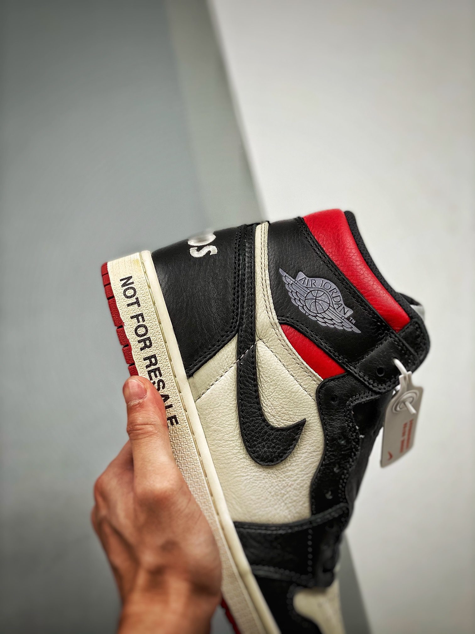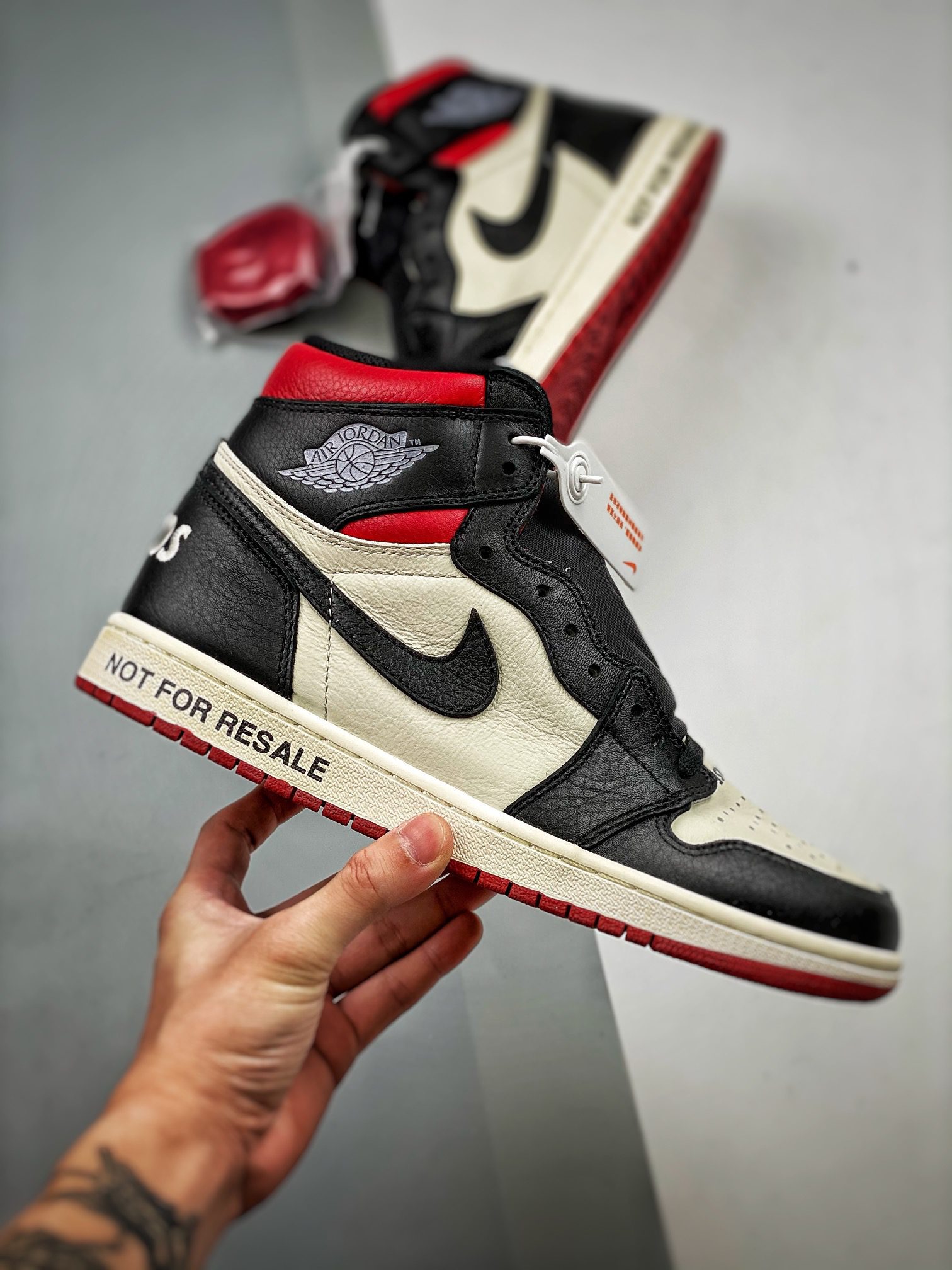 The Air Jordan 1 Retro High OG NRG Not For Resale is a standout sneaker released in 2018 as a special edition of Michael Jordan’s iconic first signature shoe. Featuring a striking black, white, and red leather upper, this model pays homage to the original Air Jordan 1 colorways. What sets this sneaker apart are the bold graphic messages printed across the upper and midsole, including phrases like NOT FOR RESALE, NO PHOTOS, and PLEASE CREASE, which challenge sneaker culture norms and encourage wearers to enjoy their pair authentically. The Air Jordan 1 Retro High OG NRG Not For Resale combines classic style with a rebellious twist, making it a coveted piece for collectors and enthusiasts alike. Crafted from 100% leather, it offers premium quality and durability. This sneaker is identified by the product code 861428-106 and remains a sought-after model in the Jordan lineup. The Air Jordan 1 Retro High OG NRG Not For Resale is a perfect blend of heritage and modern sneaker culture.