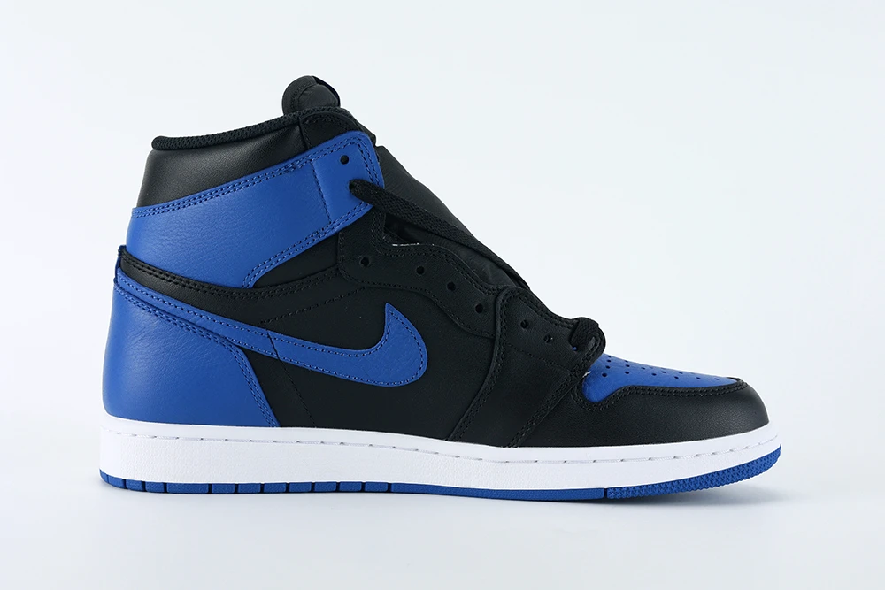The Air Jordan 1 Retro High OG Royal Blue 2017 is a highly sought-after sneaker that revives the classic black and royal blue colorway with premium materials. Released on April 1, 2017, this edition features a black leather upper combined with buttery tumbled leather on the royal blue panels, delivering a luxurious feel and authentic look. The shoe is completed with a white midsole and a royal blue outsole, along with the iconic Nike Air branding on the tongue. Known for its quality craftsmanship, the Air Jordan 1 Retro High OG Royal Blue 2017 offers a comfortable fit and breaks in nicely, making it a staple for collectors and sneaker enthusiasts alike. This model stands out for its attention to detail and faithful homage to the original design, making the Air Jordan 1 Retro High OG Royal Blue 2017 a must-have for fans of the brand.