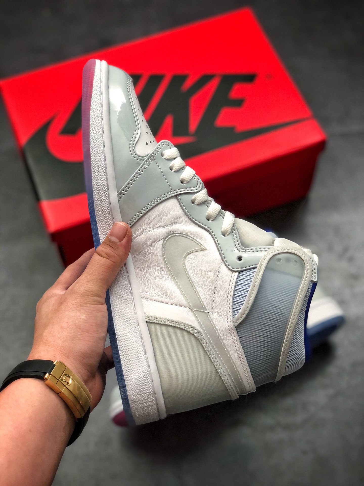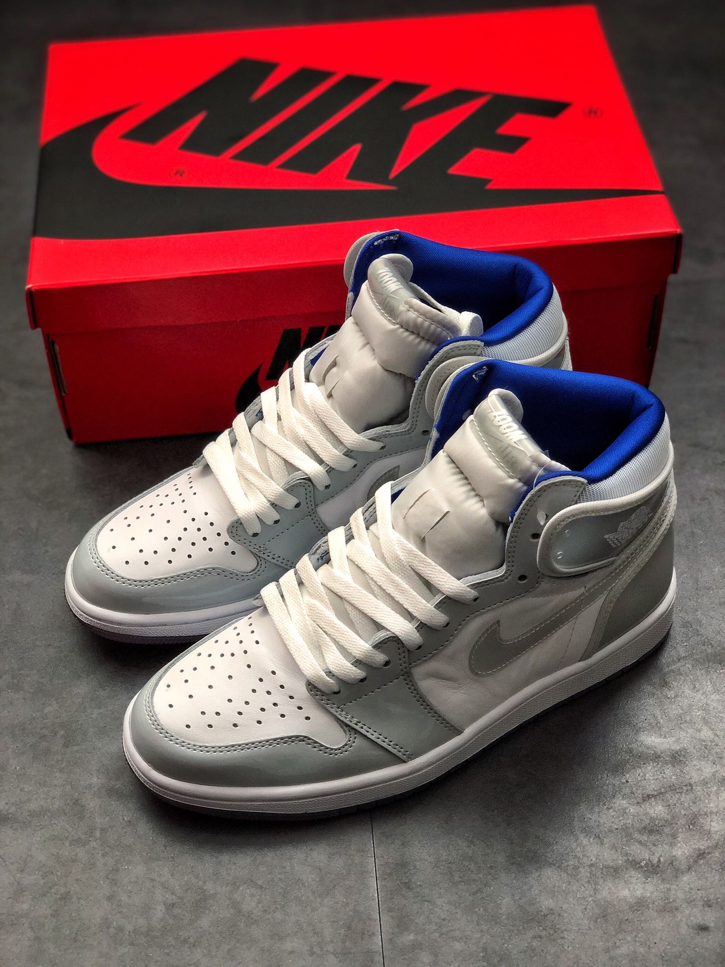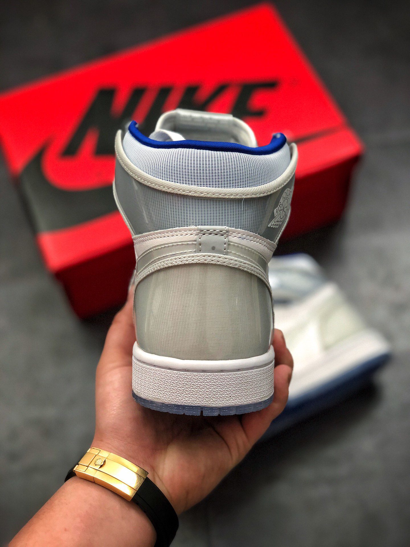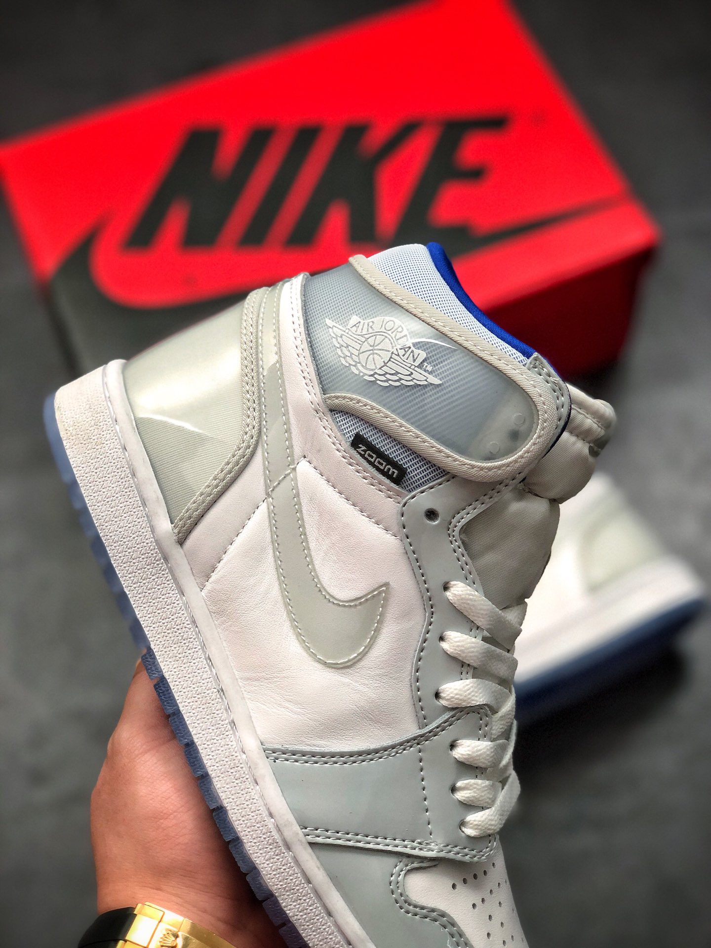 The Air Jordan 1 Retro High Zoom Racer Blue is a standout sneaker that blends classic design with modern technology. Featuring a clean white and racer blue colorway, this model incorporates Nike Zoom Air technology for enhanced comfort and responsiveness. The shoe showcases translucent TPU wings on the lateral side with the iconic Air Jordan wing logo, adding a futuristic touch. Its upper combines patent leather and mesh, creating a sleek yet breathable structure. The sneaker comes with flat white laces with blue tips and an additional pair of vibrant pink laces for style versatility. The inner lining and insoles highlight the bold racer blue color, while the outsole adds a subtle pop of pink. The Air Jordan 1 Retro High Zoom Racer Blue is a perfect fusion of heritage and innovation, making it a must-have for sneaker enthusiasts. This shoe is highly sought after for its unique design and performance features, making it a top choice among Air Jordan 1 fans.