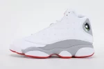 The Air Jordan 13 Wolf Grey is a sleek and stylish sneaker released in 2023, featuring a clean combination of white tumbled leather and wolf grey suede overlays. This iconic design pays homage to Michael Jordans Black Cat persona with a signature hologram on the heel that resembles a panthers eye. The sneaker also incorporates True Red accents on the Jumpman logos and outsole outlines, adding a subtle pop of color. Engineered for performance, the Air Jordan 13 Wolf Grey includes Zoom Air cushioning, a carbon fiber midfoot shank, and a paw-pad outsole for excellent grip and comfort. Its premium materials and timeless colorway make it a must-have for collectors and sneaker enthusiasts alike. The Air Jordan 13 Wolf Grey perfectly balances style and functionality, making it a standout in the Jordan 13 lineup.