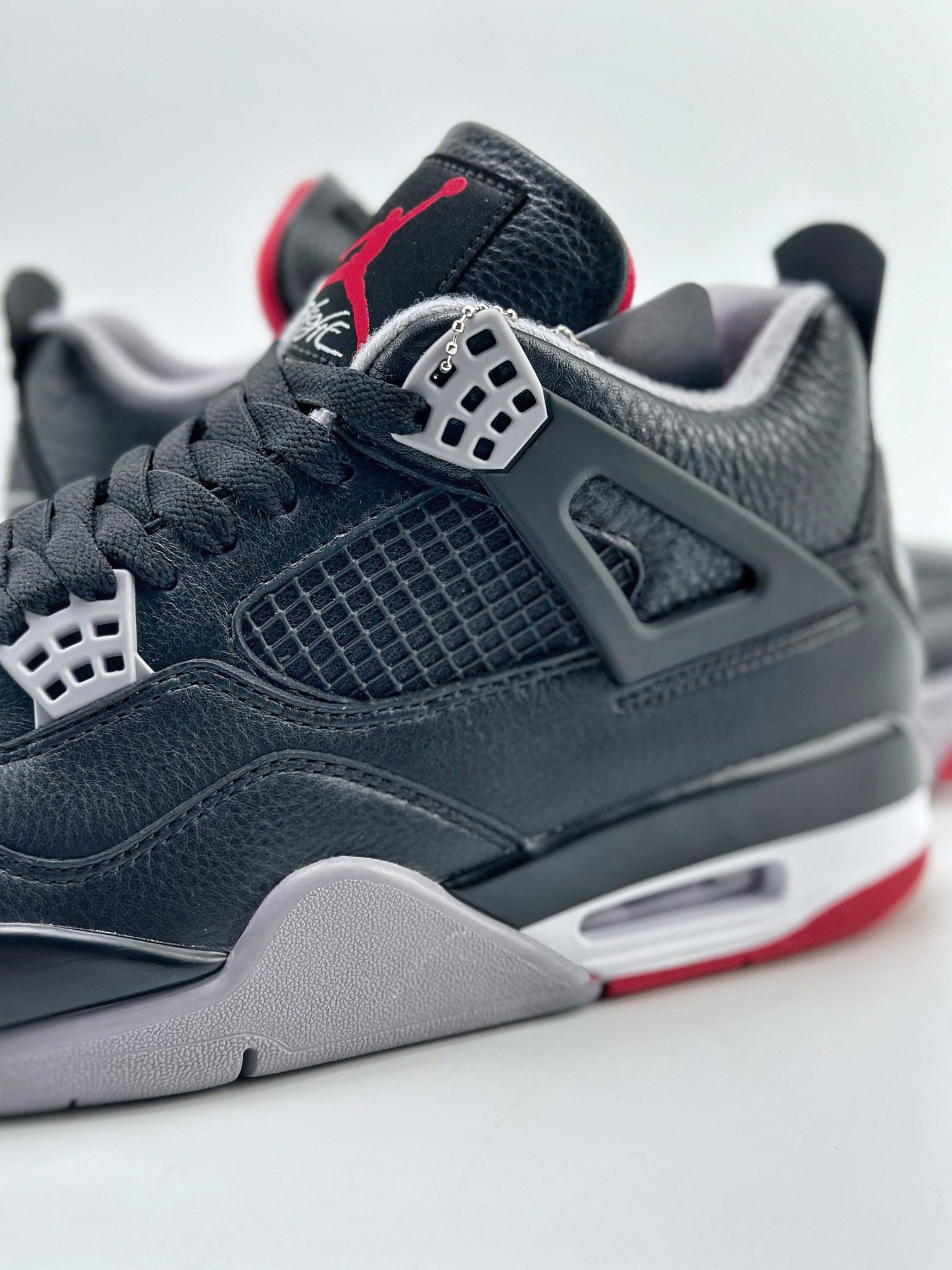The Air Jordan 4 Retro Bred Reimagined quality stands out with its premium full-grain leather upper, a significant upgrade from the original canvas and nubuck materials. This reimagined version honors the iconic ‘Bred’ colorway with a sleek black, fire red, and cement grey palette, maintaining the classic Nike Air branding on the heel tab and outsole. The shoes shape, fit, and feel have been meticulously re-engineered to match the original 1989 specifications, delivering both nostalgic authenticity and modern refinement. Fans appreciate the enhanced durability and sophisticated texture that the full-grain leather provides, making the Air Jordan 4 Retro Bred Reimagined a top-tier sneaker for collectors and new enthusiasts alike. This quality upgrade ensures the shoe not only looks iconic but also offers improved comfort and longevity, celebrating the 35th anniversary of this legendary silhouette with style and substance. The Air Jordan 4 Retro Bred Reimagined quality truly elevates the classic design for todays sneaker culture.
