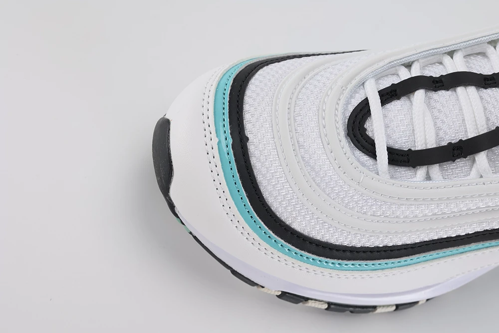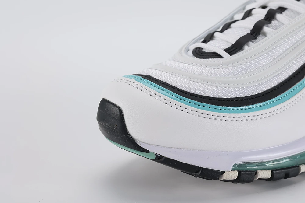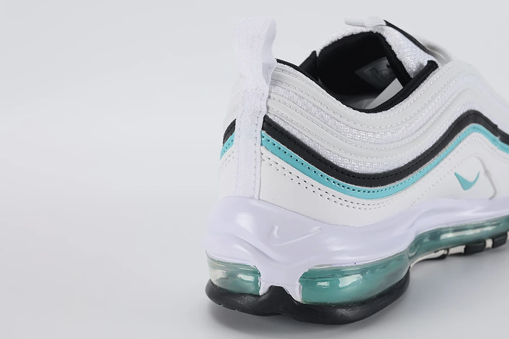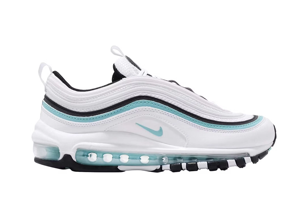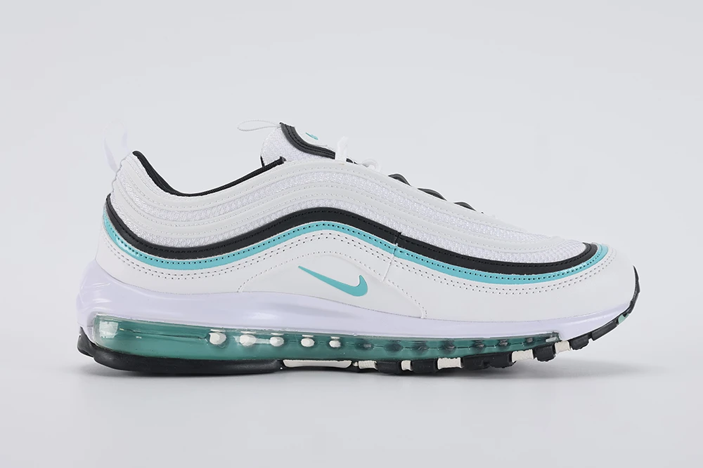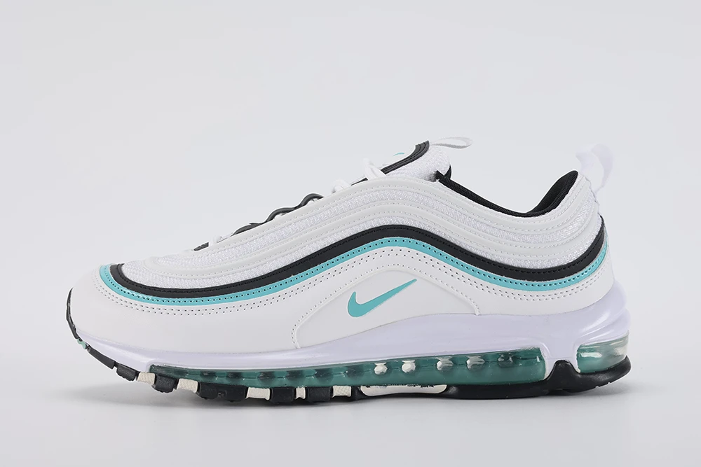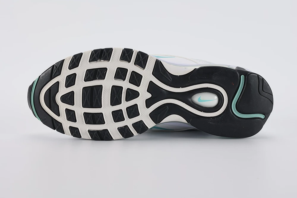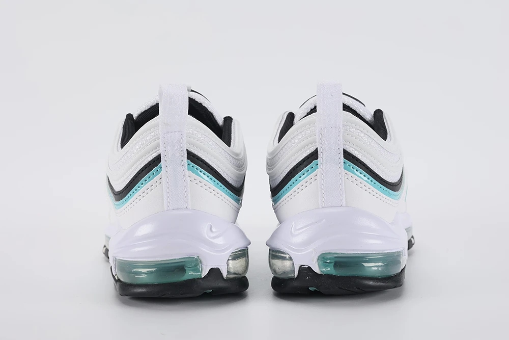The **Air Max 97 Aurora Green White women’s** sneaker offers a stylish and comfortable option for women seeking a unique look combined with performance. Featuring the iconic full-length visible Air unit, this model provides excellent cushioning and support. The Aurora Green hue adds a fresh, Tiffany-inspired pop of color against the clean white base, making it a standout in any wardrobe. Designed with reflective details and premium materials, the Air Max 97 Aurora Green White women’s shoe balances durability and fashion effortlessly. Whether for casual wear or light activity, these sneakers deliver the classic Air Max 97 silhouette with a vibrant twist, making them a must-have for sneaker enthusiasts and everyday wearers alike. This shoe fits true to size and is praised for its sturdy construction and all-weather versatility, ensuring long-lasting comfort and style. The Air Max 97 Aurora Green White women’s sneaker is perfect for those who want a blend of iconic design and modern colorways.