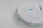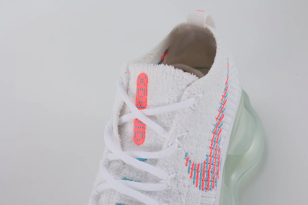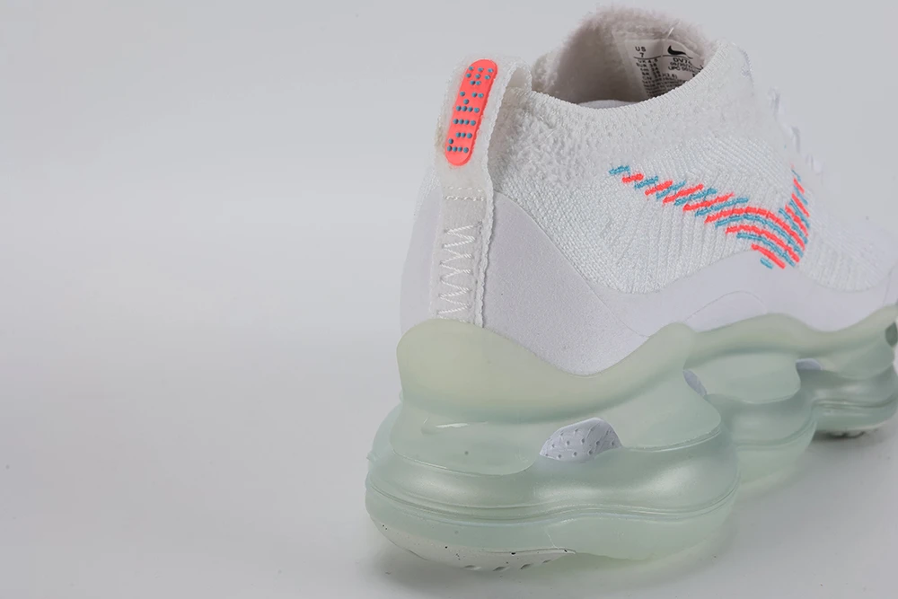 The Air Max Scorpion Lagoon Pulse sneaker features a Flyknit base combined with chenille overlays, adding texture and depth to its design. The contrasting beaded Swoosh on the sides enhances its premium look, while the rubber outsole with a full-length exposed Air Max unit delivers superior traction and cushioning. This mid-top sneaker is designed for both style and comfort, making it suitable for everyday wear or casual outings. The white mesh upper is complemented by Lagoon Pulse blue and Hot Punch orange details, creating a fresh and dynamic color palette. Nikes use of advanced VR design software and rapid prototyping helped develop the Air Max Scorpion, reducing waste and improving the shoes environmental footprint. The sneakers construction is a testament to Nikes dedication to blending technology with fashion, offering a product that is both innovative and visually appealing. Whether for collectors or casual wearers, the Air Max Scorpion Lagoon Pulse stands out as a versatile and stylish choice.