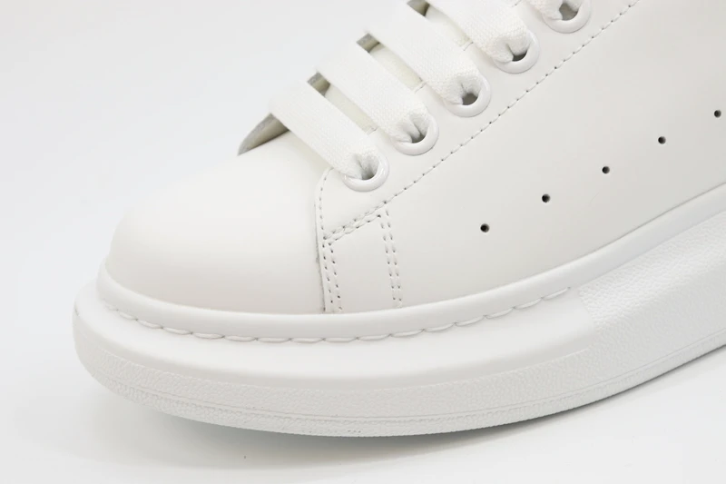 Alexander McQueen’s oversized leather platform sneakers are renowned for their unique blend of contemporary design and high-quality materials. These sneakers typically feature a rubber outsole for traction and durability, paired with a smooth calf leather upper that offers a polished finish. The platform sole, measuring around 1.5 inches, adds a fashionable lift without compromising comfort. Available in various color combinations like white and grey or classic black, these sneakers often include perforated side details and contrasting heel tabs for added style. The lace-up vamp and padded collar enhance fit and support, making them suitable for everyday wear. Crafted in Italy, each pair reflects meticulous attention to detail and superior craftsmanship. Whether styled casually or dressed up, Alexander McQueen leather platform sneakers provide a versatile and luxurious footwear option that complements modern streetwear and high fashion alike.