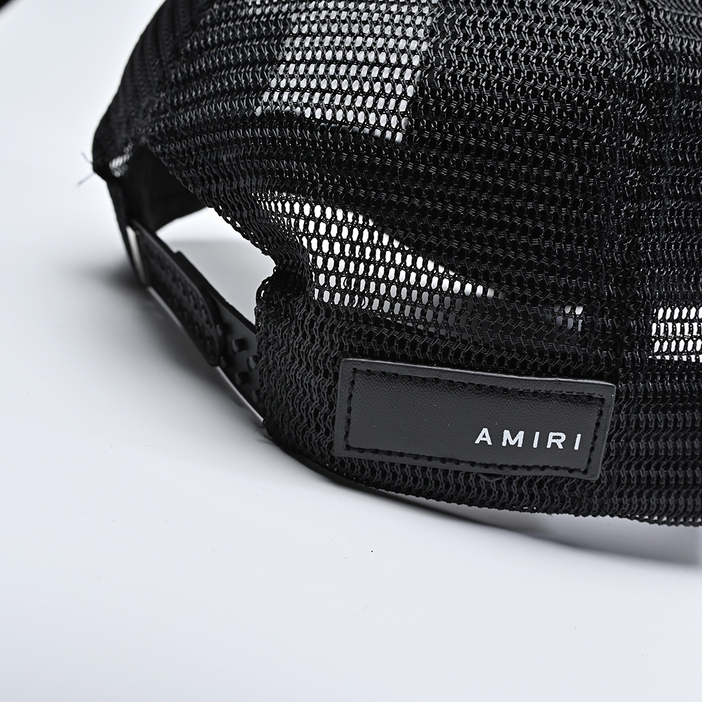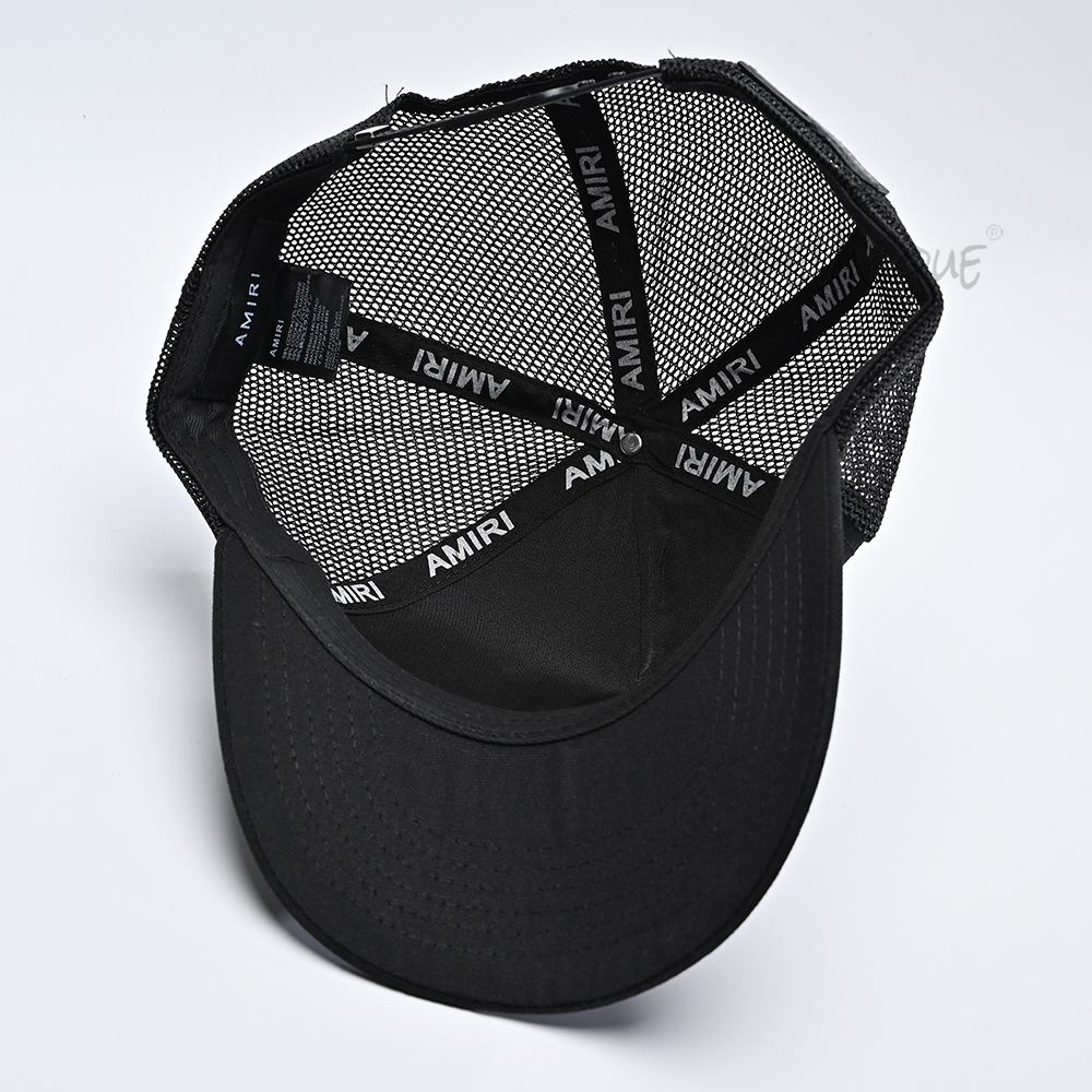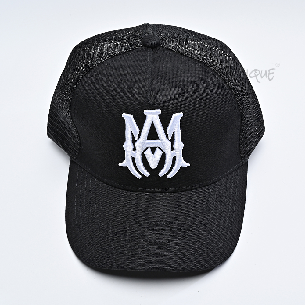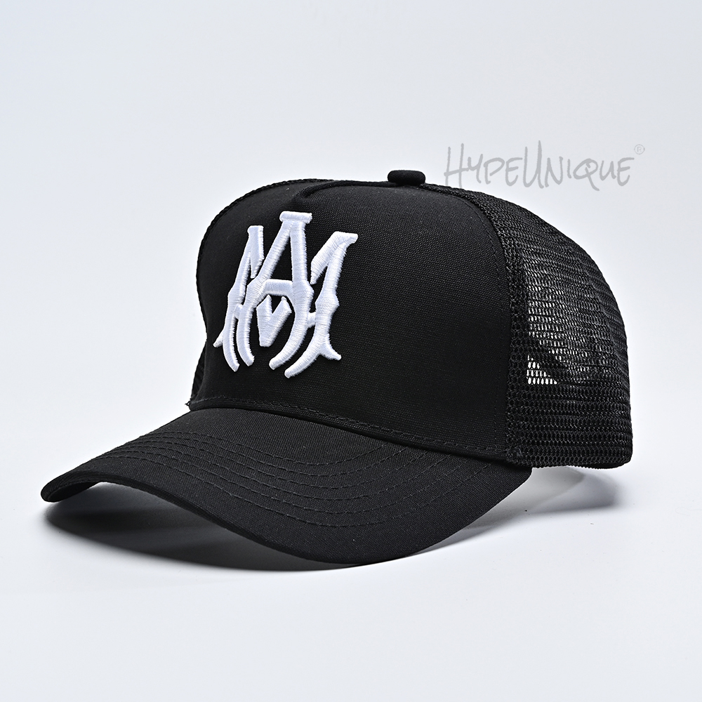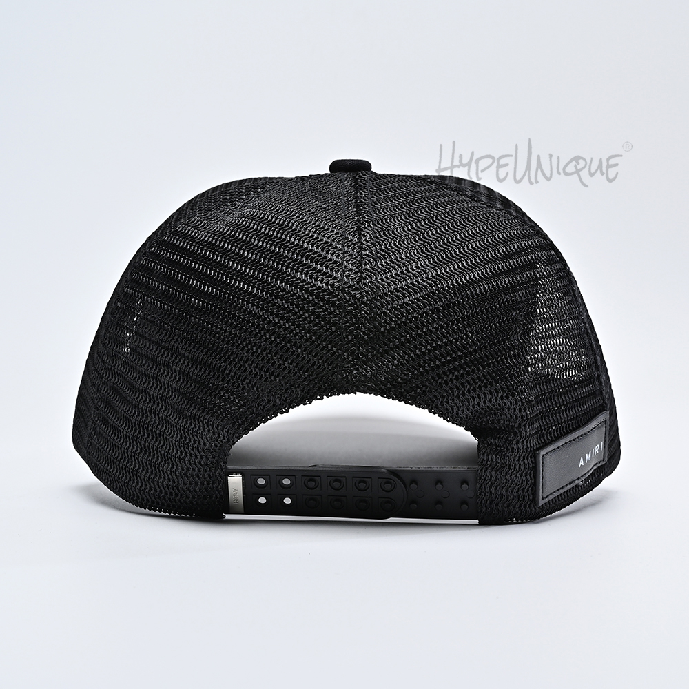 The Amiri MA Logo Trucker Cap is a stylish and iconic accessory crafted with premium materials. Featuring the signature MA logo embroidery on the front, this trucker cap combines a durable black canvas front with a breathable mesh back for comfort and ventilation. It includes a curved brim and an adjustable snapback closure, ensuring a perfect fit for most head sizes. Made in the USA, the cap showcases meticulous craftsmanship and unique detailing, making it a standout piece in any casual or streetwear outfit. The Amiri MA Logo Trucker Cap blends classic trucker hat design with luxury branding, perfect for those seeking both style and quality. This cap is easy to maintain with spot cleaning recommended to preserve its look. Whether for everyday wear or to elevate your sneakerhead style, the Amiri MA Logo Trucker Cap is a must-have accessory that highlights the brands dedication to detail and fashion-forward design.