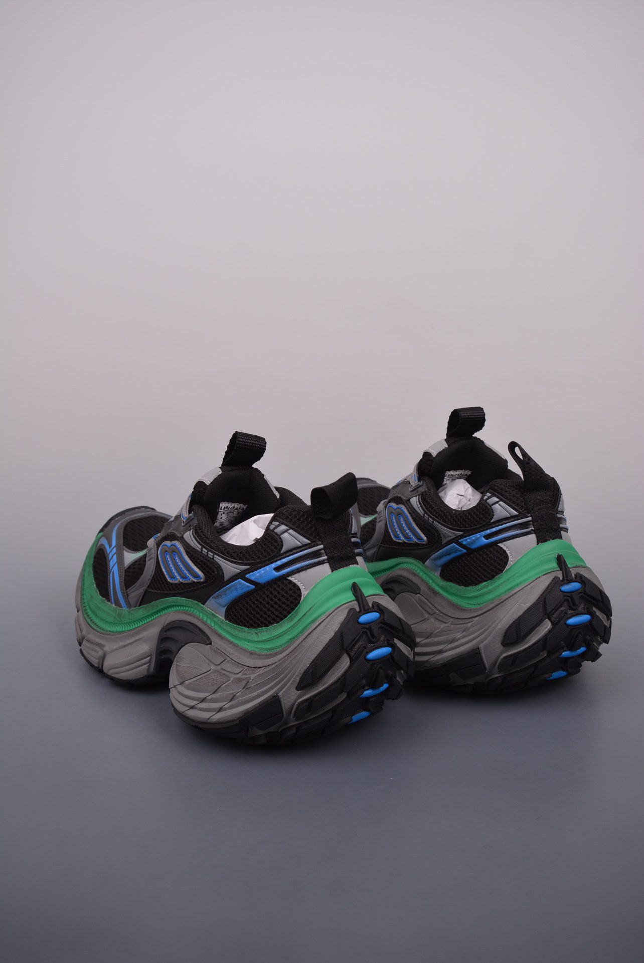 Balenciaga’s 10XL sneakers are renowned for their exaggerated volume and worn-out effect, blending mesh, TPU, and rubber for a unique texture and durability. The men’s 10XL low-top sneakers come in a variety of color combinations, including black, grey, blue, and green, all crafted without leather to appeal to eco-conscious consumers. These sneakers feature a lace-up front and cushioned footbed, ensuring comfort alongside their bold design. The oversized silhouette is a hallmark of Balenciaga’s innovative approach, making the 10XL model a standout in the luxury sneaker market. Available in multiple sizes, these sneakers are perfect for those who want to combine avant-garde style with everyday wearability. The brand’s commitment to authenticity and quality is reflected in their detailed inspection process, covering stitching, logos, and packaging. This ensures that every pair of Balenciaga 10XL sneakers meets the highest standards of craftsmanship and design.