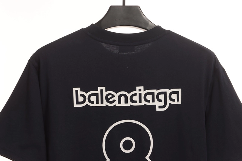 The Balenciaga back black 8 letter logo printing t shirt is a stylish and sustainable choice for fashion enthusiasts. This black t-shirt features the iconic Balenciaga logo printed prominently on both the chest and back, showcasing the brand’s signature 8-letter design. Crafted from 100% organic cotton, it offers a vintage jersey feel with a comfortable medium fit, crewneck, and short sleeves. Made in Portugal, this t-shirt combines luxury with eco-conscious production, using cotton grown without chemical fertilizers or pesticides. The Balenciaga back black 8 letter logo printing t shirt is perfect for those who want to make a bold statement while supporting sustainable fashion. Its minimalist yet striking design makes it a versatile addition to any wardrobe, suitable for casual or upscale streetwear looks. Experience the blend of comfort, style, and responsibility with this exclusive Balenciaga piece, featuring the distinctive 8 letter logo printing on a sleek black background.