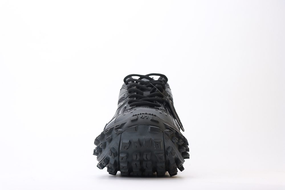 The Balenciaga Defender Black sneaker, also known as the Balenciaga black defender, is distinguished by its unique worn-out effect and extreme tire tread sole, which enhances grip and durability. The black Balenciaga defenders feature a combination of mesh, nylon, and synthetic overlays that add texture and depth to the sleek black design. Balenciaga defenders black models include embossed logos on the tongue, heel, and toe, reinforcing the brand’s iconic status. The Balenciaga defender sneaker black is designed with a 15mm arch and includes an additional pair of laces, ensuring both comfort and customization. These sneakers are not only a fashion statement but also a practical choice, with a robust build that withstands daily wear. Their all-black aesthetic makes them easy to pair with various styles, from casual to edgy streetwear. The Balenciaga defenders black continue to be a sought-after item for those who appreciate luxury sneakers with a bold, contemporary flair.