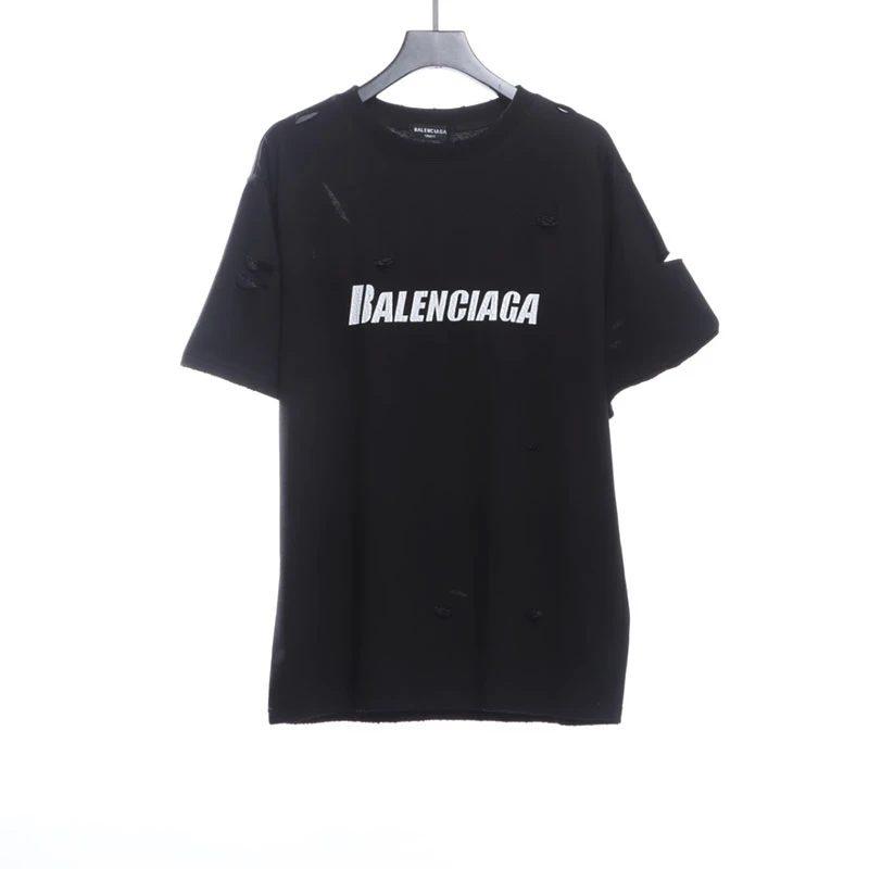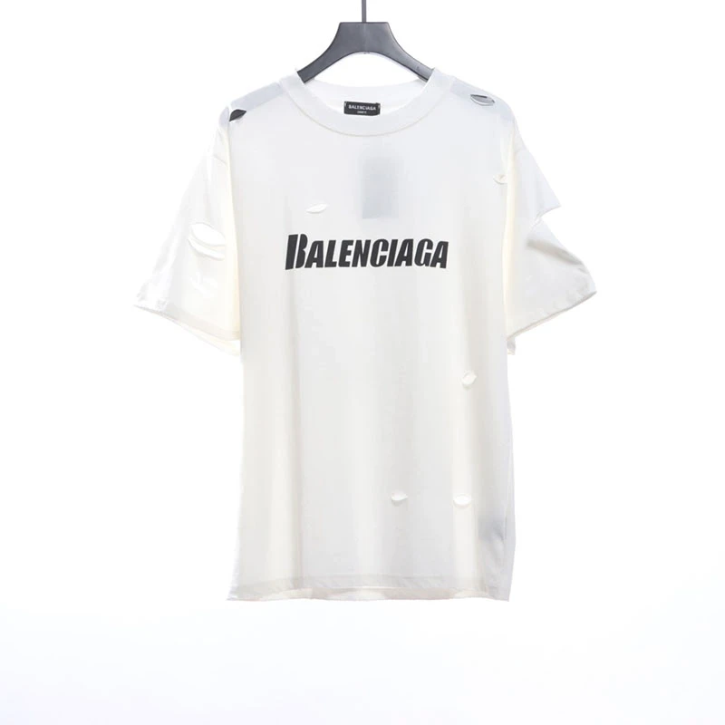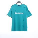 Balenciaga’s distressed t-shirts are crafted with meticulous attention to detail, often made from 100% cotton for breathability and comfort. The distressed tape logo cotton t-shirt features a mock neck and elbow-length sleeves, combining classic elements with a modern twist. Many designs showcase asymmetric hems and ribbed crewnecks, enhancing the worn-effect aesthetic. The vintage jersey fabric with rippings and holes is a hallmark of Balenciagas destroyed t-shirts, offering a large, relaxed fit with dropped shoulders for an effortlessly cool look. These t-shirts are typically made in Portugal and require gentle care such as hand washing or cold machine wash to preserve their unique distressed features. Balenciagas approach to distressed apparel blends luxury craftsmanship with streetwear edge, making these t-shirts versatile for casual or statement outfits.