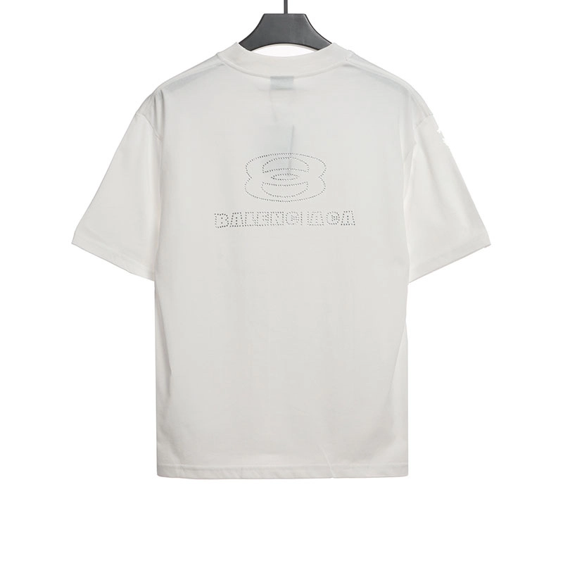 The Balenciaga Front and Back Diamond Logo T Shirt is a standout piece featuring the iconic Balenciaga logo embroidered both on the front and back, creating a bold diamond-shaped design. Crafted from 100% cotton dry jersey, this medium-fit t-shirt offers comfort with a crewneck and short sleeves, making it perfect for everyday wear. The shirt also includes worn-out details that add a unique, vintage-inspired touch. Made in Portugal, it reflects Balenciaga’s commitment to sustainable fashion, using at least 50% organic cotton to reduce environmental impact. This t-shirt is a must-have for those seeking a blend of luxury, style, and ethical production. The keyword ‘balenciaga front and back diamond logo t shirt’ is featured prominently, emphasizing its distinct design and premium quality.