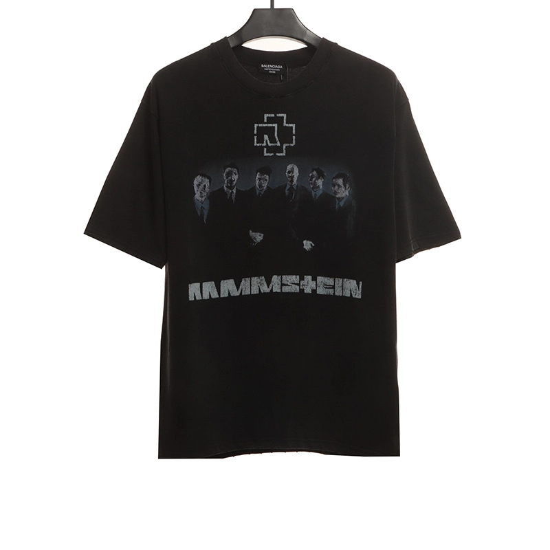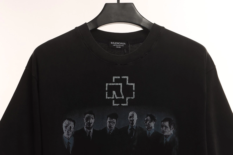 The Balenciaga German Tank Portrait Band T Shirt is a standout piece from the exclusive collaboration between Balenciaga and the German metal band Rammstein. This high-fashion T-shirt features a striking portrait of the band members, captured by renowned artist Gottfried Helnwein, printed prominently on the front. Crafted from premium 100% cotton, it offers both comfort and style, making it a coveted item for fans and fashion enthusiasts alike. The design merges Balenciaga’s luxury aesthetic with Rammstein’s iconic imagery, creating a unique band T-shirt that transcends typical merchandise. The Balenciaga German Tank Portrait Band T Shirt is perfect for those seeking a bold statement piece that combines music culture with high-end fashion. This T-shirt is often sought after for its limited availability and distinctive design, making it a must-have for collectors and trendsetters. Balenciaga German Tank Portrait Band T Shirt blends artistic portraiture and luxury streetwear seamlessly, embodying the spirit of both brands.