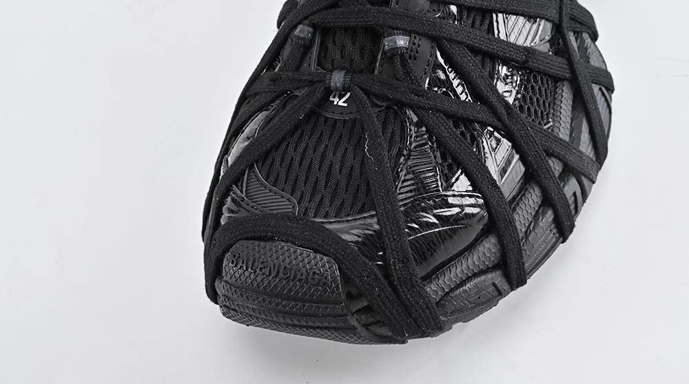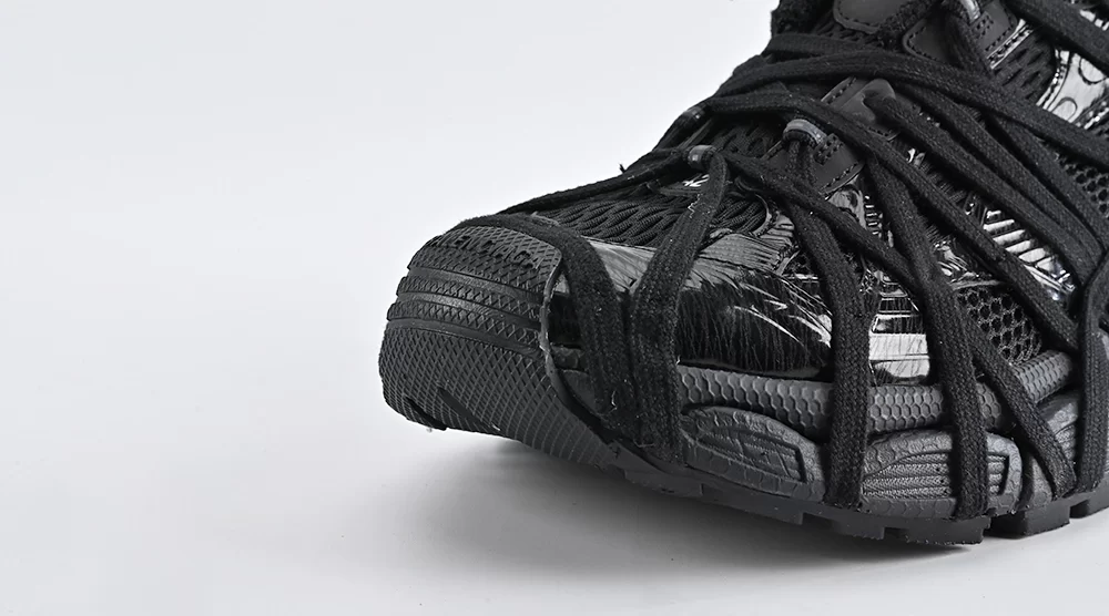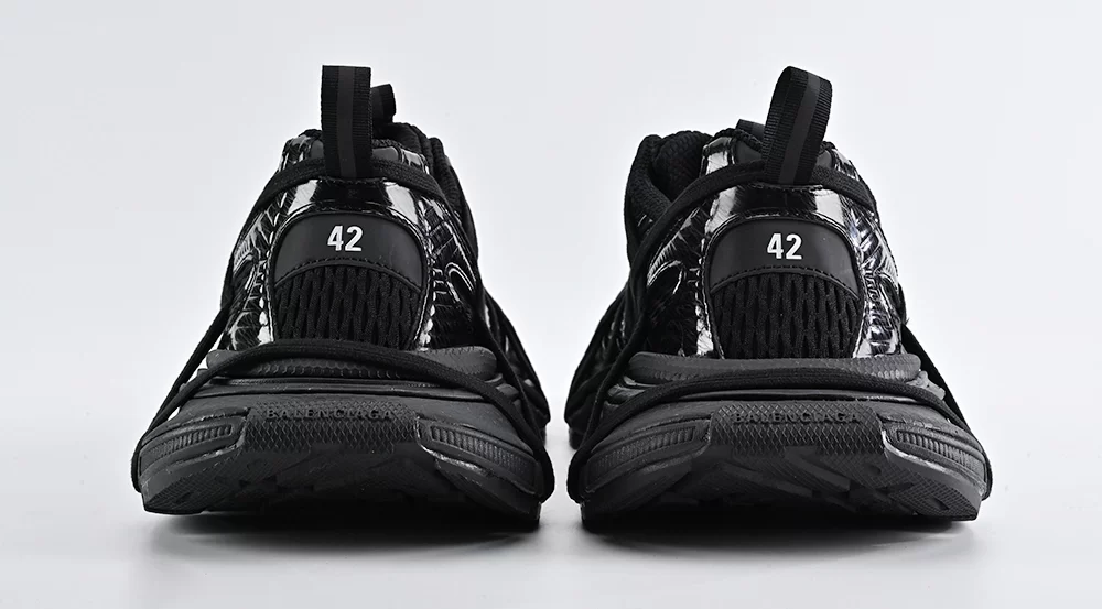 Balenciaga’s 3XL Mesh Runner sneakers are crafted with attention to detail, featuring mesh fabric combined with multicolor graphic overlays in some versions, though the 9110 All Black opts for a monochromatic look. The design includes reflective detailing and a reinforced heel for added durability and support. These sneakers are part of Balenciaga’s ongoing exploration of chunky, athletic-inspired footwear that merges fashion with function. The worn-out effect seen in some colorways adds character, while the all-black 9110 version offers a sleek, minimalist alternative. Balenciaga’s use of leather-free overlays aligns with contemporary trends toward sustainable and cruelty-free materials. The 3XL Mesh Runner is ideal for men who appreciate a bold, statement sneaker that performs well in urban environments. Its combination of mesh panelling and rubber soles ensures breathability and grip, making it suitable for everyday wear or casual outings.