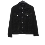 Balenciagas denim jackets are known for their innovative designs and premium craftsmanship. The brand often uses distressed Japanese denim to create a worn-in, authentic look, as seen in their patched denim jackets featuring engraved flex buttons and all-over rips and repairs. These jackets typically fit large and are designed with an extremely oversized silhouette, including dropped shoulders for a relaxed feel. The all-over print denim jackets from Balenciaga showcase bold branding, often in blue and white color schemes, with multiple front pockets adding functionality to style. Whether you prefer the mud-dyed distressed look or the classic patched denim style, Balenciaga jackets offer a versatile and fashion-forward option for those who want to make a statement. Their commitment to quality and responsible sourcing also ensures that each piece is crafted with care and sustainability in mind.