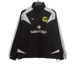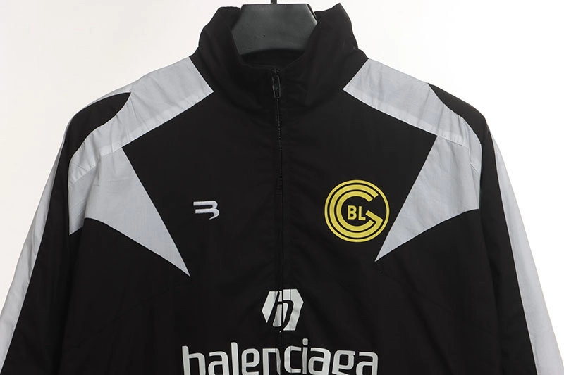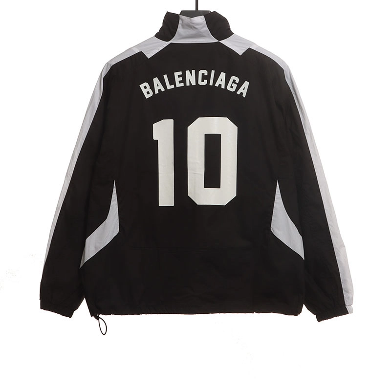 The Balenciaga Soccer Splicing No 10 Jacket is a standout piece that merges sporty aesthetics with high-fashion design. Crafted from premium materials like polyamide and high-density polyester, this jacket features a unique splicing pattern that highlights the iconic No 10 motif, symbolizing soccer culture. Its oversized fit and snap button front offer both comfort and style, making it a versatile addition to any wardrobe. The jackets minimalist yet bold design reflects Balenciagas innovative approach to streetwear, perfect for those who want to make a statement. Whether worn casually or as part of a layered outfit, the Balenciaga Soccer Splicing No 10 Jacket elevates your look with a modern edge. This jacket is a must-have for fashion enthusiasts seeking a blend of athletic inspiration and luxury craftsmanship. Experience the perfect fusion of soccer heritage and contemporary fashion with the Balenciaga Soccer Splicing No 10 Jacket, a true icon in designer outerwear.