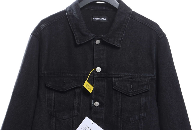 Balenciagas denim jackets are renowned for their oversized fits and premium materials, typically crafted from 100% cotton for comfort and durability. The distressed look is a signature element, offering a rugged, lived-in appearance that enhances the jackets streetwear appeal. Many styles, including the tape washed distressed denim jacket, feature multiple pockets such as chest flap and side welt pockets, providing both style and practicality. The buttoned front and cuff closures add classic denim jacket elements while maintaining a modern silhouette. Balenciaga often uses unique color treatments like indigo blue or matte black, and some jackets are made in Japan or Italy, reflecting the brands commitment to quality. Whether styled with casual outfits or layered over more polished looks, these jackets elevate any ensemble with their bold design and luxurious feel. The tape print detail sets this jacket apart from typical denim, making it a coveted piece for those who want to express individuality through fashion.