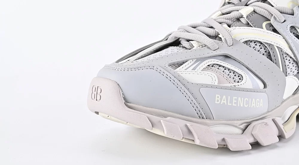 Balenciagas Track LED sneaker is a fashion-tech marvel that blends hiking-inspired design with luxury streetwear appeal. The sneakers multi-paneled upper incorporates mesh and synthetic materials, offering breathability and support. Its layered sole features foam cushioning and a reinforced rubber outsole for durability and comfort. The LED lights embedded in the heel and outsole can cycle through multiple colors and modes, controlled by a discreet switch on the shoe. This innovative feature is rechargeable via a USB port, making it convenient for continuous use. The sneakers reflective 3M panels and embossed Balenciaga logos add to its distinctive look. Priced at around $995, the Track LED sneaker is a premium offering that appeals to those seeking both style and cutting-edge sneaker technology. Its light grey colorway provides versatility, easily pairing with various outfits for a bold yet sophisticated look.