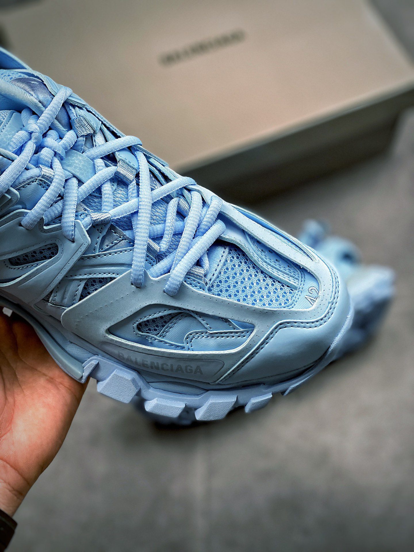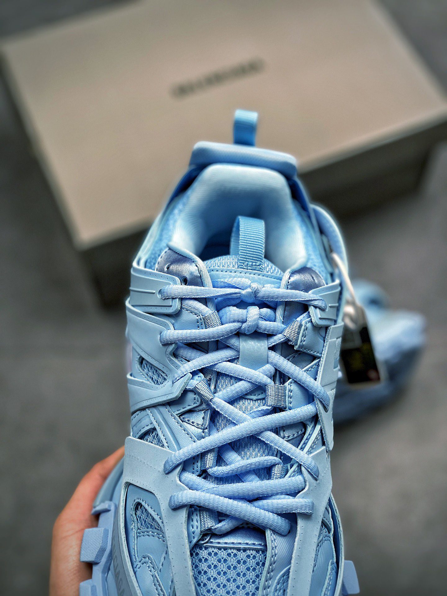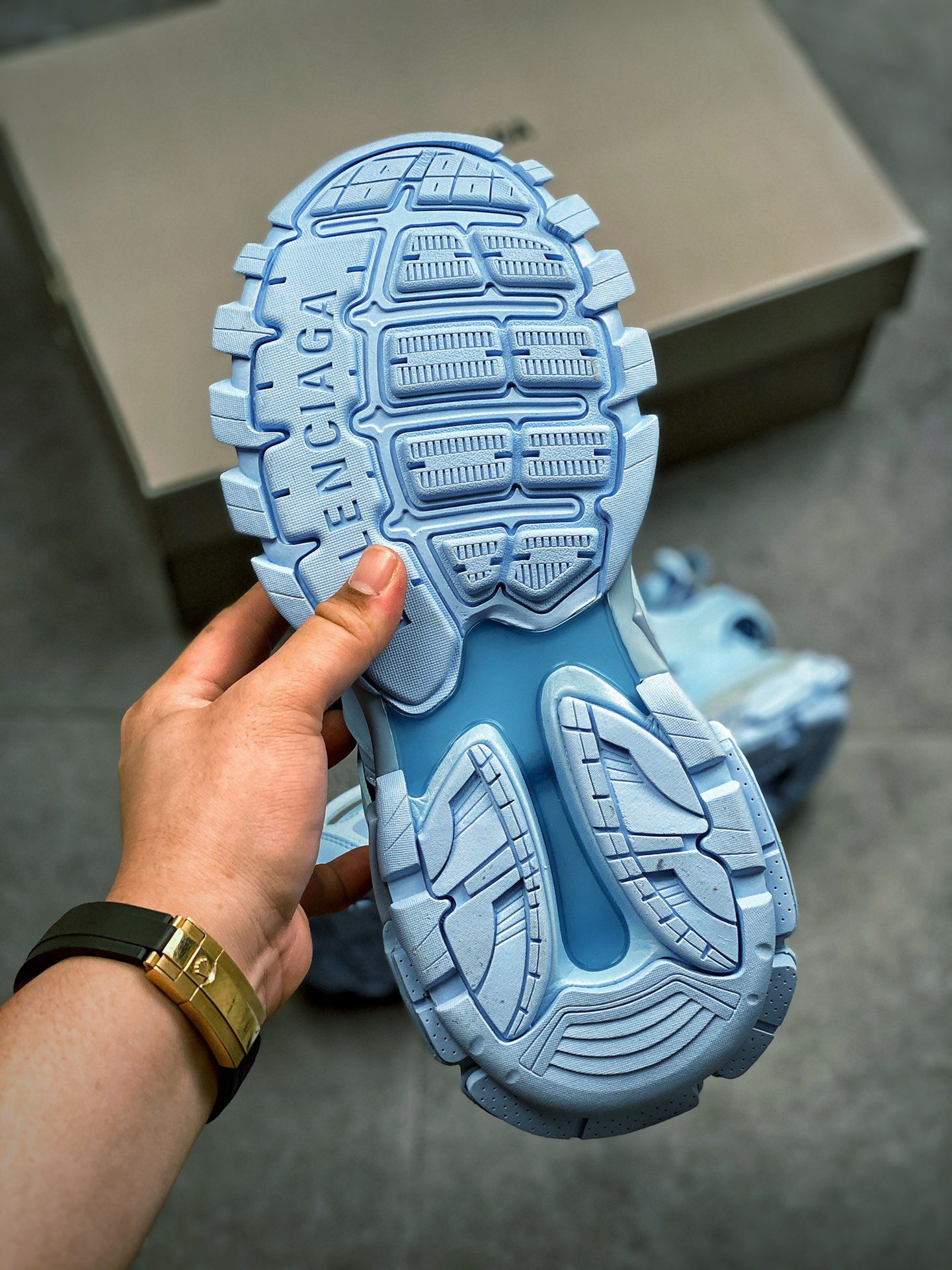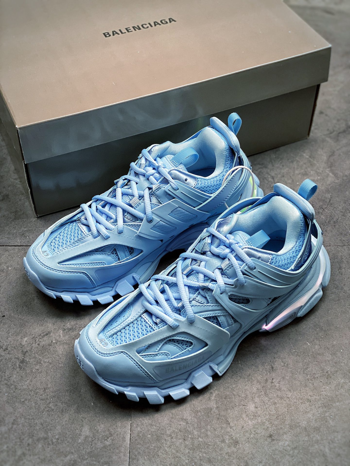 The Balenciaga Track Sneaker LED Light Blue 1.0 is a standout luxury sneaker that combines high fashion with innovative technology. Featuring a multi-paneled upper with cord laces and a layered sole with foam cushioning and reinforced rubber outsole, this sneaker offers both style and comfort. What sets this model apart is the integrated LED light in the heel, which illuminates in various colors, adding a futuristic edge to the classic trail-inspired design. Embossed branding on the tongue, side, front, and heel enhances its premium look. The Balenciaga Track Sneaker LED Light Blue 1.0 is perfect for those seeking a bold statement piece that merges fashion and tech seamlessly. This sneaker is a must-have for collectors and fashion enthusiasts alike, showcasing Balenciagas innovative approach to sneaker design. The Balenciaga Track Sneaker LED Light Blue 1.0 is priced at around $995 and remains a coveted item in the luxury sneaker market.
