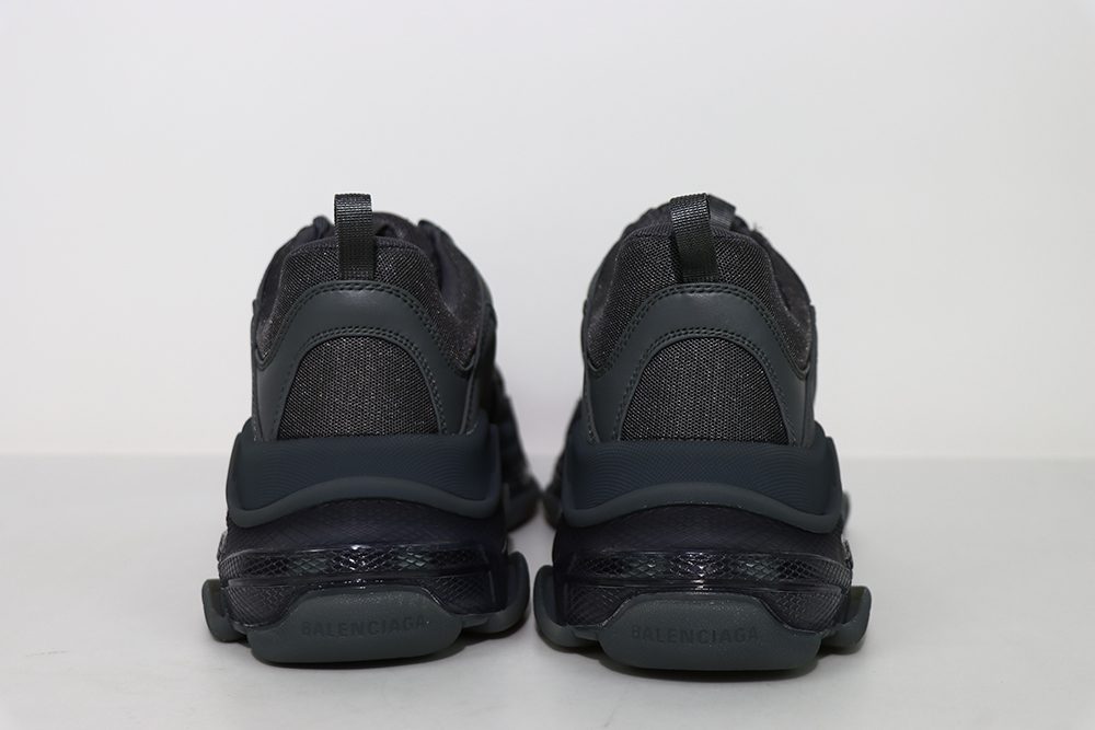 The Balenciaga Triple S sneaker line is renowned for its chunky, layered sole and oversized design, which has become iconic in the fashion world. The dark gray variants, including the popular Dark Grey Mix, offer a versatile palette that pairs well with various outfits, from casual streetwear to more polished looks. Constructed with premium materials such as leather, mesh, and suede, these sneakers provide both style and comfort. The All Over Logo Triple S Sneaker in grey and black features synthetic leather uppers and durable rubber midsoles and outsoles, ensuring longevity and grip. Known for running large, it is recommended to size down when purchasing. The Triple S sneakers also include signature branding details like the Balenciaga logo on the tongue and insole, reinforcing their luxury status. Their chunky silhouette adds height and a unique edge, making them a favorite among fashion enthusiasts who embrace bold, statement footwear.