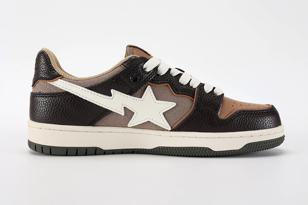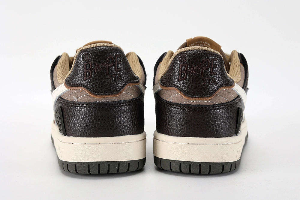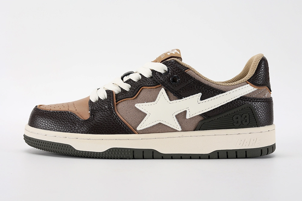 The Bape Sk8 Sta Brown sneaker is a standout model from the iconic A Bathing Ape lineup, blending premium materials with a stylish brown and ivory colorway. Featuring a durable leather upper combined with suede overlays, the Bape Sk8 Sta Brown offers both sophistication and resilience. The sneakers rubber sole ensures excellent traction and support, making it ideal for everyday wear. Released in October 2021, this model has become a favorite for sneaker enthusiasts seeking a versatile yet distinctive look. The Bape Sk8 Sta Brown perfectly balances classic design with modern streetwear appeal, making it a must-have for collectors and fashion-forward individuals alike. Whether paired with casual or elevated outfits, the Bape Sk8 Sta Brown delivers comfort and style in equal measure. This sneaker truly embodies the essence of BAPEs craftsmanship and urban aesthetic, making the Bape Sk8 Sta Brown a timeless addition to any wardrobe.