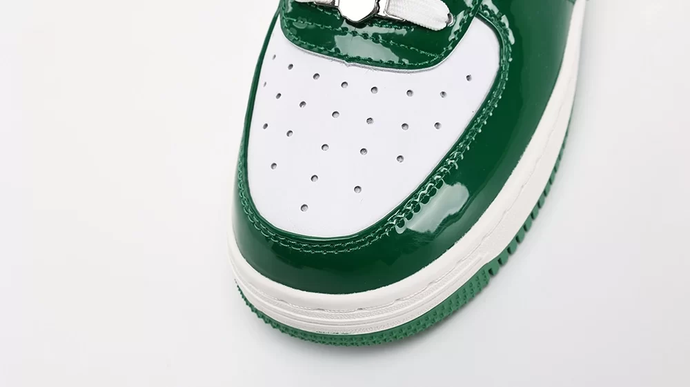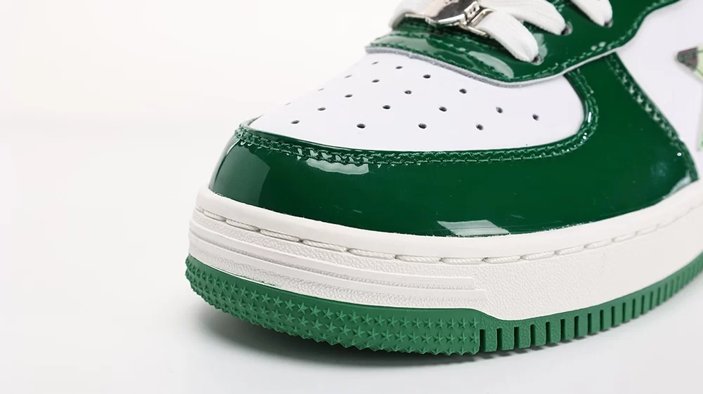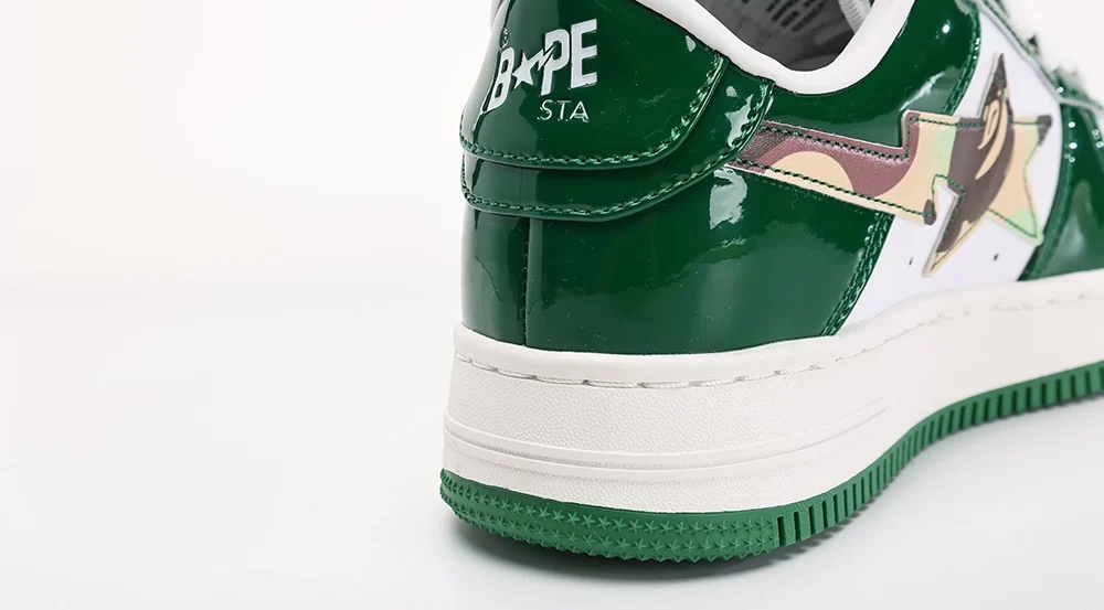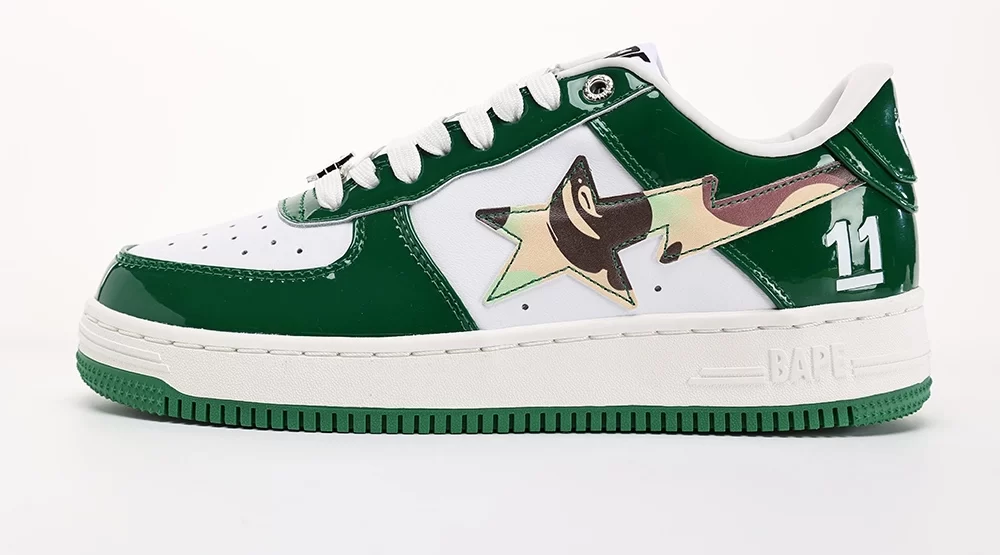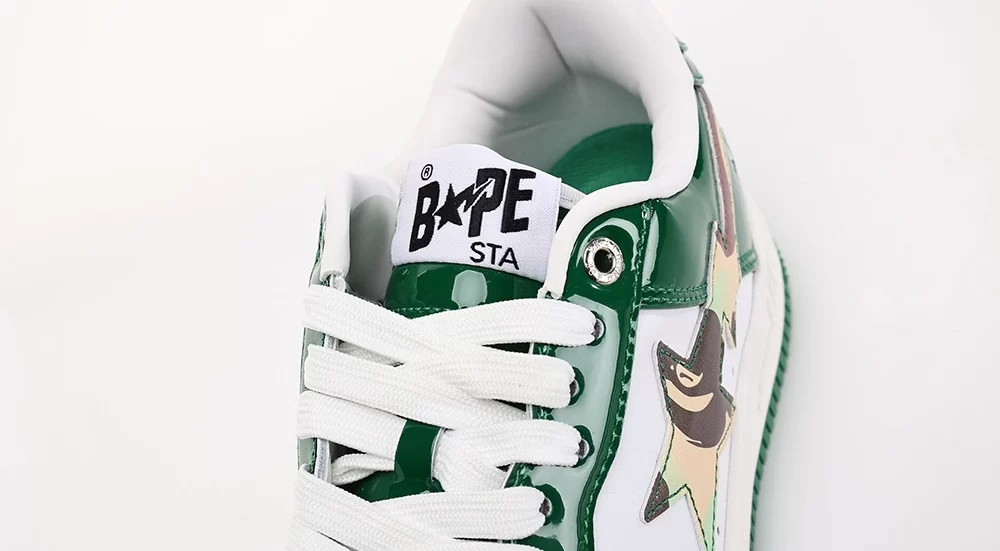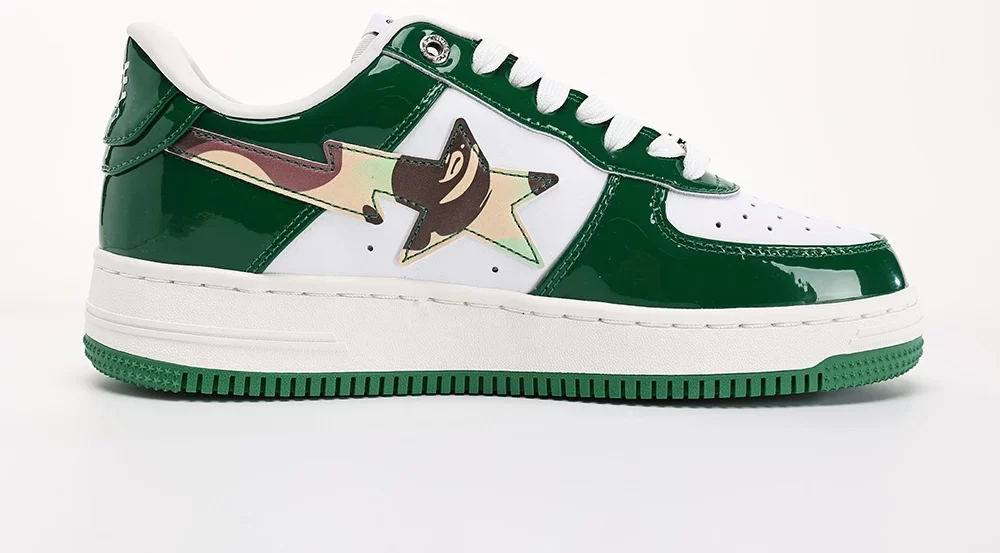 The Bape Sta Dark Green Camo White sneaker is a standout model from A Bathing Ape’s iconic Bape Sta series, released in September 2022. This unisex sneaker features a pristine white leather base accented with the signature dark green ABC camo pattern, creating a bold yet versatile look. The design incorporates the distinctive Bape Sta star logo, blending streetwear heritage with modern style. Crafted for lifestyle wear, the Bape Sta Dark Green Camo White offers both comfort and eye-catching aesthetics, making it a must-have for sneaker enthusiasts and fashion-forward individuals alike. This model perfectly balances the classic Bape Sta silhouette with the brand’s renowned camo motif, ensuring it stands out in any collection. The keyword “bape sta dark green camo white” appears naturally throughout this description, emphasizing its unique colorway and design.
