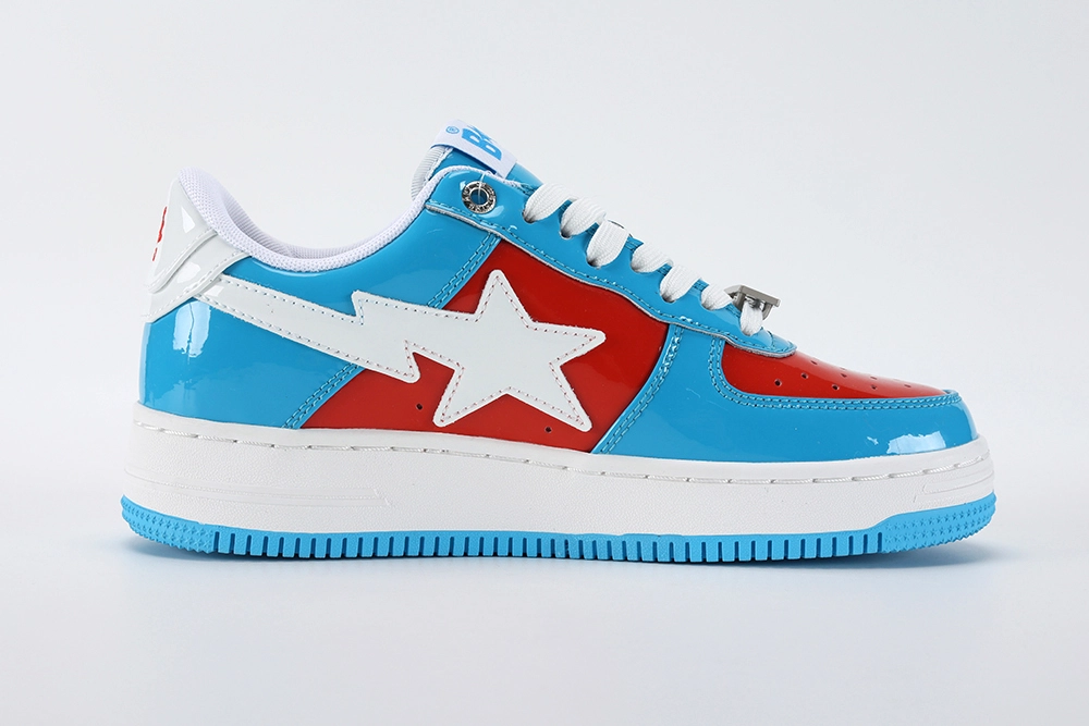 The Bape Sta Marvel Comics Captain America 2022 sneaker is a standout release in the Marvel x Bape Sta 2022 collection, launched in August 2022. This sneaker features BAPEs signature patent leather upper in a striking combination of varsity red and a unique shade of blue, inspired by Captain America’s iconic colors. The left shoe showcases an embossed and screen-printed Captain America graphic, while the right shoe sports the Marvel logo on the heel, emphasizing the collaboration. Additional details include the Bape Sta star on the sides, branded lace rivets, and special lacelets with Marvel insignia, highlighting the premium design. This 2022 edition pays homage to the original 2005 Marvel x Bape Sta collaboration, blending nostalgia with modern sneaker culture. The collection also includes other Avengers-themed colorways, but the Captain America model remains a fan favorite for its bold, patriotic aesthetic and collectible appeal. The release was first available in China on August 21, 2022, followed by a U.S. launch later that year at select BAPE stores[1][2][5].