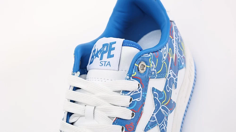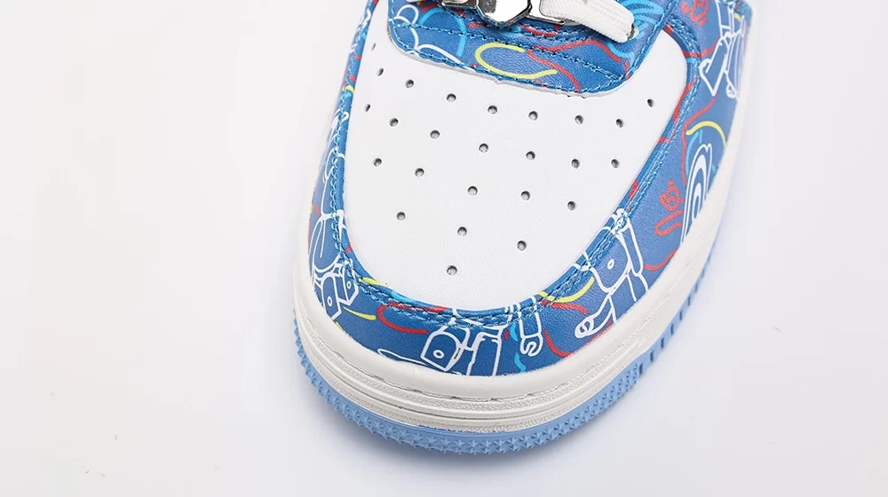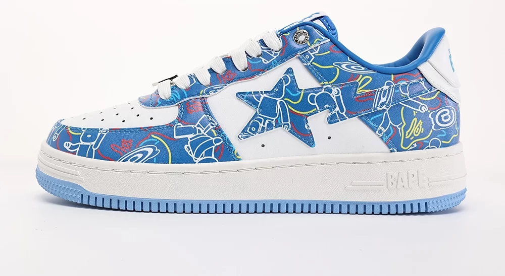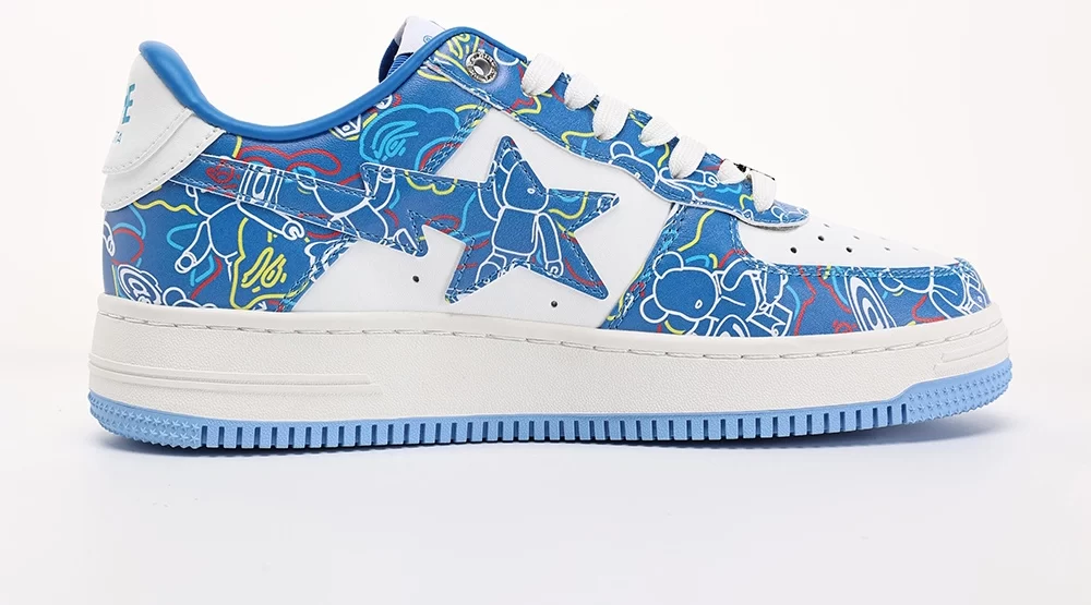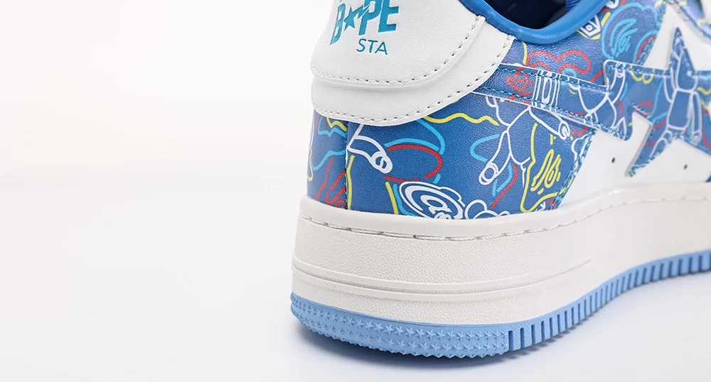The Bape Sta Medicom Toy Bearbrick Camo Blue sneaker is part of a broader collection celebrating the partnership between A Bathing Ape and Medicom Toy. Alongside the sneakers, the collection includes apparel featuring classic BAPE patterns like BUSY WORKS and COLLEGE, reimagined with BE@RBRICK motifs. Notably, the Shark Hoody from this collection features a two-tone MCT CAMO design in black and blue, with BE@RBRICK’s ear motif on the hood, adding an eye-catching detail to the iconic streetwear piece. Released on November 20, 2021, the collection is available at authorized BAPE stores, US.BAPE.COM, and Medicom Toy outlets. This collaboration highlights the synergy between street culture and collectible art, appealing to fans of both brands. The Bape Sta Medicom Toy Bearbrick Camo Blue sneaker stands out not only for its design but also for its cultural significance, representing a fusion of fashion, art, and limited-edition exclusivity.