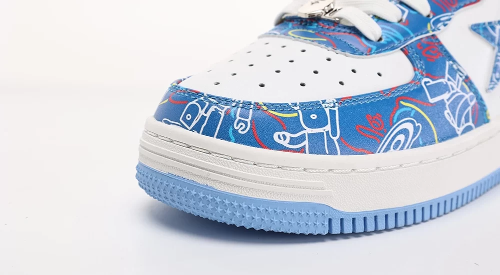 The Bape Sta Medicom Toy Bearbrick Camo Blue sneaker is a standout collaboration between A Bathing Ape and Medicom Toy, featuring the iconic BE@RBRICK camo pattern in a striking blue colorway. Released in November 2021, this sneaker combines BAPE’s signature streetwear style with Medicom Toy’s collectible BE@RBRICK design, creating a unique fusion of fashion and art. The shoe showcases blue patent leather with printed camo details and a lace-up closure, delivering both style and comfort. This limited-edition sneaker also comes with an original BE@RBRICK 70% figure, making it a must-have for collectors and sneaker enthusiasts alike. The Bape Sta Medicom Toy Bearbrick Camo Blue perfectly blends bold aesthetics with exclusive branding, making it a coveted piece in the sneaker community. Whether for casual wear or display, this sneaker embodies the creative spirit of both brands and their long-standing collaboration.