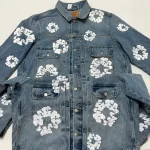 The Denim Tears x Levi’s collaboration continues to impress with its thoughtful design and cultural significance. The Denim Tears x Levi’s jacket blue, released in the SS22 season, showcases a perfect blend of classic denim aesthetics and modern streetwear influences. Available in various sizes, including US XL, this jacket is designed to fit comfortably while making a strong visual impact. The multi-paneled jean washes add depth and dimension, while subtle floral overlays pay homage to Denim Tears’ signature motifs. This jacket is not only a fashion statement but also a tribute to community and heritage, making it a meaningful piece for collectors and fashion enthusiasts alike. Whether paired with sneakers or casual denim, the Denim Tears jacket blue elevates any look with its unique style and cultural resonance.