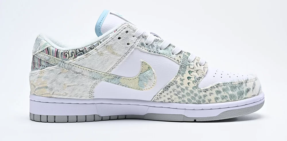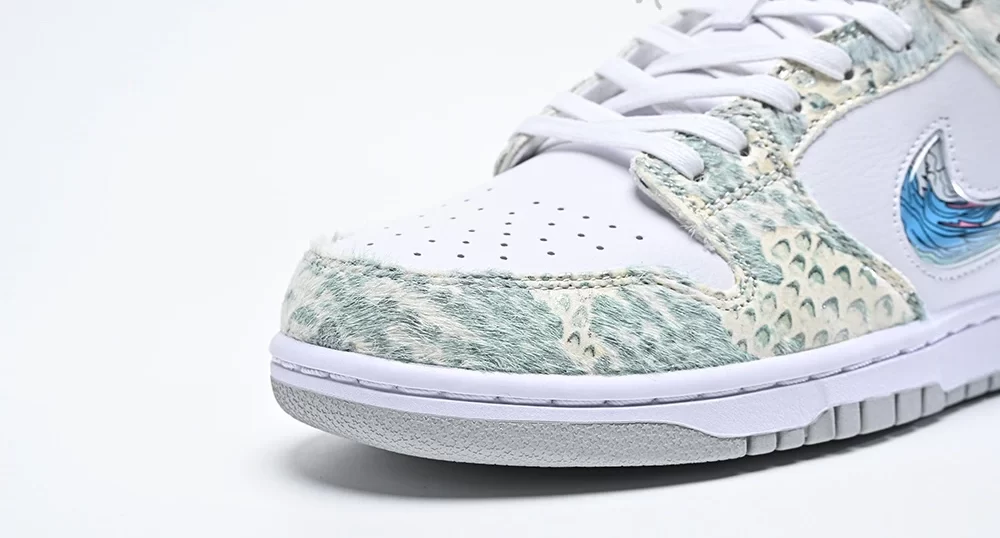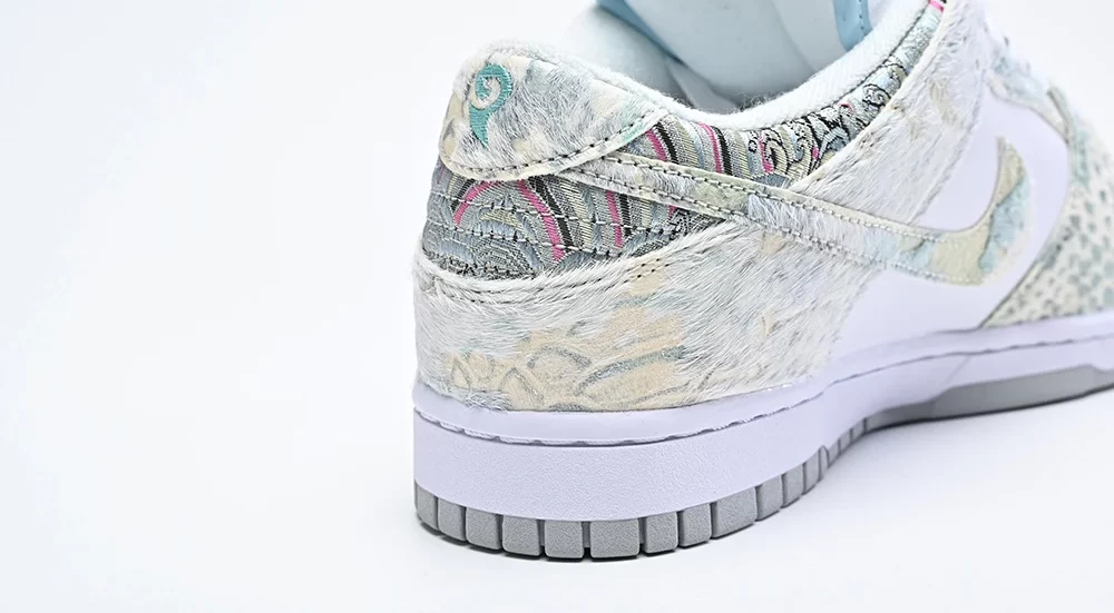 The Dunk Custom Year of the Dragon is a striking sneaker that celebrates the Chinese zodiac with a unique design inspired by the dragon. Featuring a premium leather upper in white and grey tones, this custom Dunk showcases intricate details such as a red heel tab embroidered with the Nike logo and dragon motifs that add a bold cultural touch. The sneaker combines smooth white leather with grey overlays and black accents on the swoosh, creating a balanced yet eye-catching colorway. Its craftsmanship highlights subtle textures like tumble leather and embroidered elements, making it a standout piece for collectors and sneaker enthusiasts alike. The Dunk Custom Year of the Dragon perfectly blends traditional symbolism with modern sneaker culture, making it a must-have for those seeking exclusivity and style. This model fits true to size and is designed for comfort and durability, ideal for everyday wear or special occasions. Overall, the Dunk Custom Year of the Dragon is a limited-edition release that captures the spirit of the dragon while delivering the classic Dunk silhouette with a fresh twist.