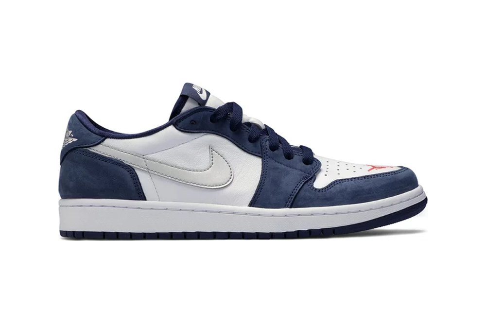 The Eric Koston Nike SB Air Jordan 1 Low is a standout collaboration blending skateboarding heritage with iconic basketball style. Designed by legendary skateboarder Eric Koston, this sneaker features a white leather base accented with midnight navy nubuck overlays and a metallic silver Swoosh, creating a sleek, timeless look. The shoe also includes Nike SB branding on the tongue and the classic Air Jordan Wings logo on the heel, with a red Jumpman logo on the toe box and Koston’s signature inside the tongue. Released in June 2019, the Eric Koston Nike SB Air Jordan 1 Low pays homage to the Air Jordan 1s early adoption by skateboarders, combining style and performance with a Zoom Air sock liner for comfort and impact protection. This sneaker is perfect for both skateboarding and casual wear, making the Eric Koston Nike SB Air Jordan 1 Low a must-have for collectors and fans alike.