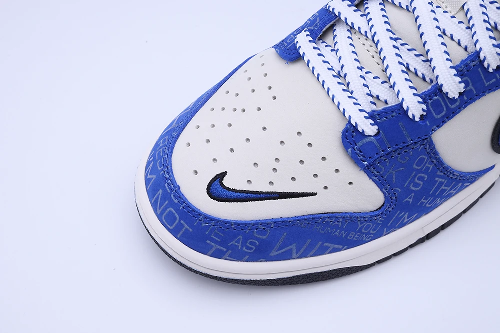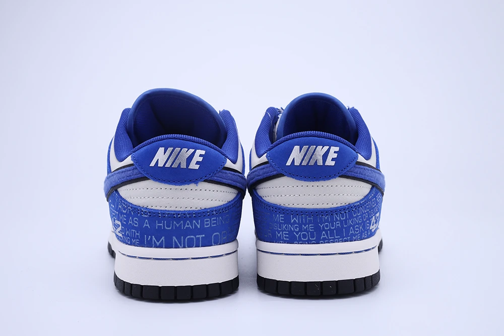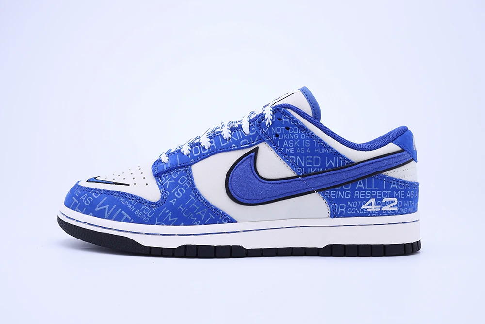 The Jackie Robinson Dunk is a special edition Nike Dunk Low released to honor the 75th anniversary of Jackie Robinson breaking the baseball color line in 1947. This sneaker features a striking design inspired by the Brooklyn Dodgers, with cream suede uppers and vibrant royal blue overlays. Key details include Jackie Robinson’s iconic number 42 on the heel, a quote on the insoles stating, Im not concerned with your liking or disliking me. All I ask is that you respect me as a human being, and baseball-stitched laces that enhance the theme. The sneaker sits on a white midsole with a black rubber outsole and contrast blue stitching, making it a standout tribute. Released on July 19, 2022, the Jackie Robinson Dunk combines historical significance with classic Nike Dunk style, priced at $130 USD. This model is a must-have for sneaker collectors and fans of sports history alike, embodying both style and cultural impact.