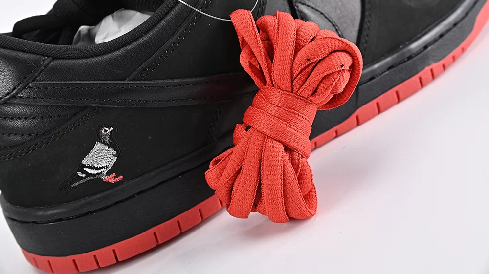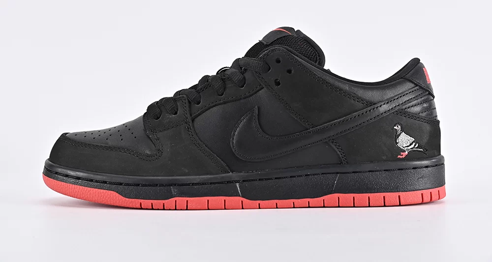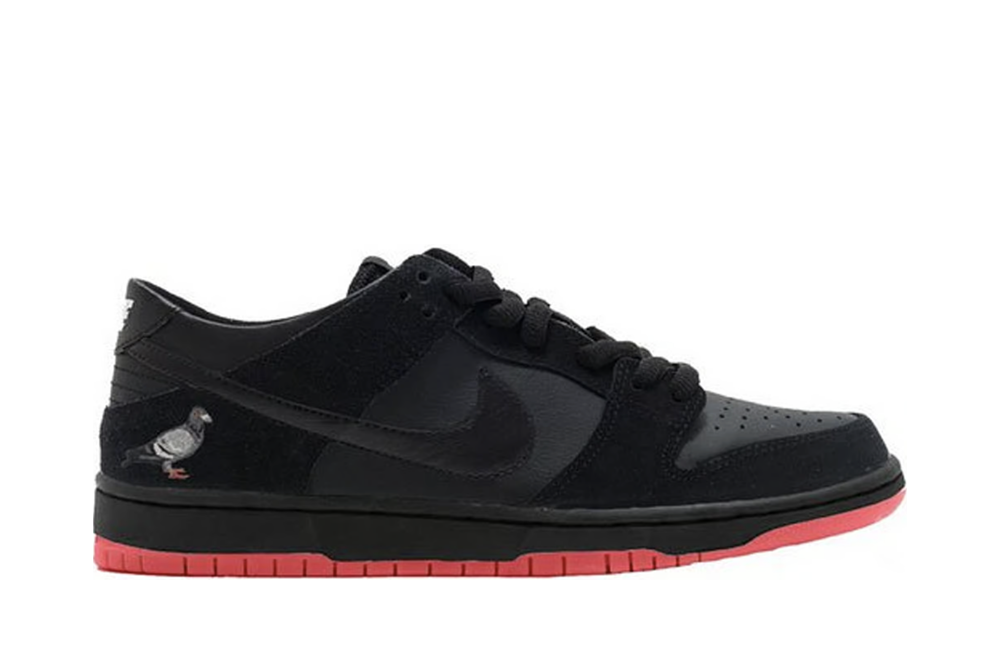 The Nike SB Dunk Low ‘Black Pigeon’ is a tribute to the original Pigeon Dunk that made waves in 2005, designed by Jeff Staple. This quick strike release features a tonal black nubuck upper paired with a classic Sienna red outsole, creating a striking contrast that honors the original colorway while introducing a modern twist. The sneaker includes unique details such as oval-shaped black laces and a secondary pair in Sienna with black lace tips, adding versatility to the look. Inside, the insoles feature a screen-printed foot graphic reminiscent of the OG Dunk ESPYs, with added foam padding and a Zoom Air unit in the heel for comfort and performance. Released in limited quantities, the SB Dunk Low TRD QS ‘Black Pigeon’ is hard to find, especially in key markets like Toronto, where it was available only at select skate shops and Nike’s online store. This sneaker perfectly balances skateboarding functionality with streetwear appeal, making it a coveted piece for collectors and enthusiasts.