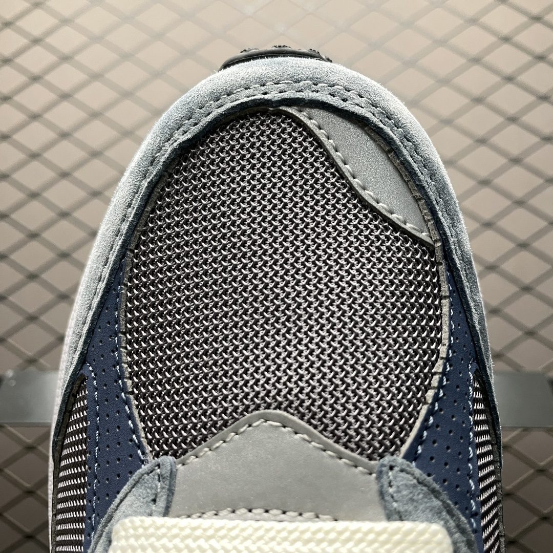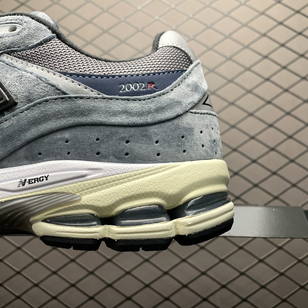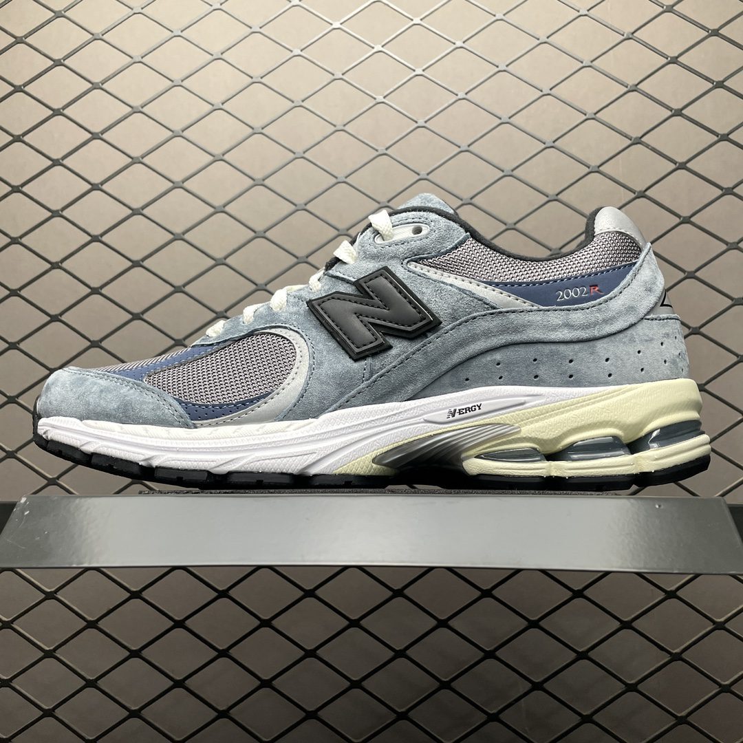 The JJJJound x New Balance 2002R Storm Blue men’s M2002RU2 model continues the collaboration’s legacy of combining style and performance. Featuring a relaxed silhouette, the sneaker incorporates mesh paneling for enhanced breathability and suede overlays for durability and premium feel. The iconic black “N” logo on the sides contrasts sharply against the storm blue upper, while off-white laces and a gray synthetic base add depth to the design. This edition also includes reflective accents and JJJJound branding, emphasizing the partnership’s attention to detail. The New Balance x JJJJound 2002R Storm Blue sneaker is designed for both comfort and style, with the N-ERGY cushioning system providing excellent support for all-day wear. The sneaker’s rubber sole ensures traction and durability, making it suitable for various conditions. Whether for casual wear or sneaker collecting, the JJJJound x 2002R ‘Storm Blue’ offers a unique blend of muted tones and technical features that appeal to fans of minimalist yet functional footwear.