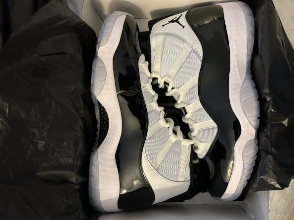 The Jordan 11 Retro Concord 2018 quality is widely regarded as a significant improvement over previous releases, closely matching the original 1995 model. The shoe features premium materials, including soft, high-quality leather on the heel and a thin patent leather cut that mirrors the OG design. The mesh and padding maintain a firm yet comfortable fit, similar to the original. While the patent leather is not as thick as the very first release, it is made of genuine leather, enhancing durability and aesthetic appeal. The icy translucent outsole with a subtle blue tint helps reduce yellowing, preserving the shoes classic look. Overall, the Jordan 11 Retro Concord 2018 quality offers a near-authentic experience with attention to detail in materials and construction, making it a top choice for collectors and sneaker enthusiasts alike. This release also features the iconic number 45 on the heel, reflecting Michael Jordans early comeback season, adding historical significance to its quality and design[1][2][4].
