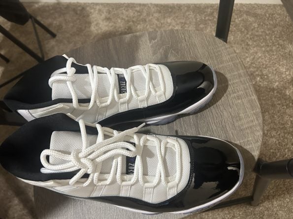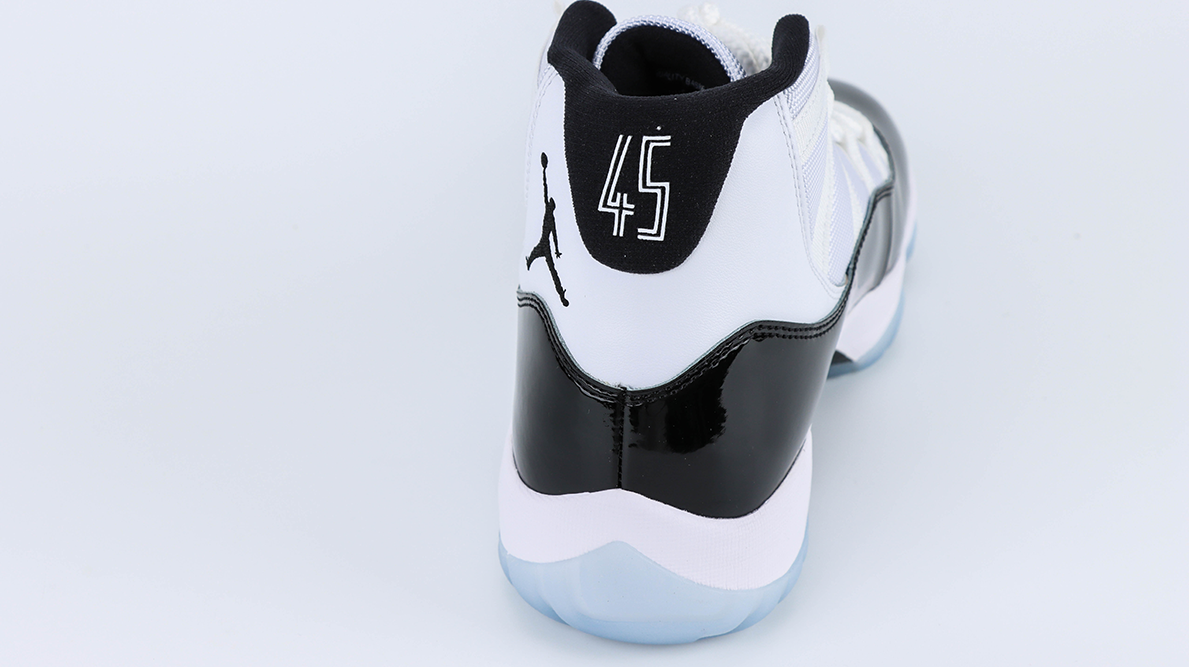 The 2018 Jordan 11 Retro Concord stands out not only for its quality but also for its faithful homage to the original 1995 release. The inclusion of the number 45 on the heel is a unique detail that distinguishes this edition, representing the jersey number Michael Jordan wore during his first comeback season. This detail appeals to collectors who value authenticity and historical context. The shoes design incorporates a carbon fiber midsole and an icy blue outsole, which are signature elements of the Concord colorway. Despite some debate over the comfort of the cushioning system, many fans appreciate the shoes balance between classic aesthetics and modern wearability. The patent leathers high-cut design and the shoes overall silhouette remain true to the original, preserving the iconic look. While some critics note the cushioning could be improved, the Jordan 11 Retro Concord 2018 remains a highly sought-after sneaker for both casual wear and serious collectors, praised for its craftsmanship and nostalgic value[2][4][5].