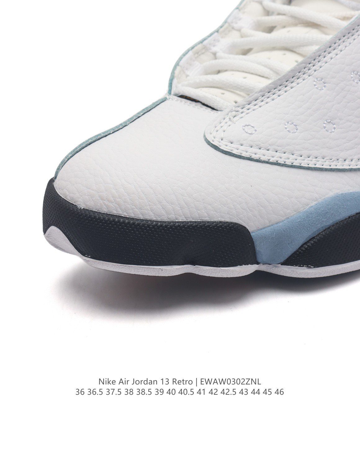The Jordan 13 Retro Blue Grey PS is a stylish and comfortable sneaker designed for younger fans of the iconic Air Jordan line. Featuring a clean white tumbled leather upper with dimpled side panels and toe box, this model incorporates a distinctive Blue Grey suede on the mudguards, heels, and part of the midsole. The shoe also includes a black midsole section and a yellow Jumpman logo embroidered on the tongue, adding vibrant contrast. The signature hologram on the ankle and a white rubber outsole complete the look. Known for its comfort and solid performance, the Jordan 13 Retro Blue Grey PS offers excellent padding and Zoom Air cushioning in both the forefoot and heel, making it suitable for casual wear and light basketball use. This sneaker blends classic Jordan 13 design elements with a fresh colorway, making it a must-have for young sneaker enthusiasts. The Jordan 13 Retro Blue Grey PS stands out with its premium materials and timeless style, perfect for kids who want both fashion and function in their footwear. Overall, the Jordan 13 Retro Blue Grey PS is a versatile and iconic sneaker that honors Michael Jordans legacy while appealing to a new generation.