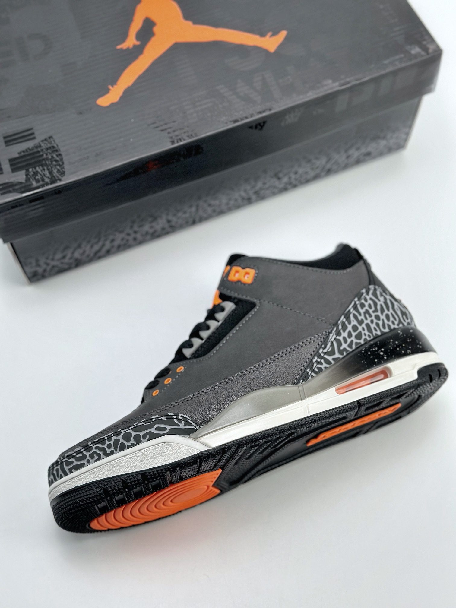 The Air Jordan 3 Fear 2023 is a highly anticipated retro release set to drop on November 25, 2023. This edition faithfully revives the iconic 2013 ‘Fear’ pack sneaker, featuring a premium dark grey suede upper paired with classic elephant print overlays on the toe and heel. The color scheme blends Night Stadium, Total Orange, and Black, with striking orange accents on the eyelets, heel, tongue, and insole Jumpman logos. The midsole showcases a gradient fade and an exposed Air unit, maintaining the signature Air Jordan 3 silhouette designed by Tinker Hatfield. The insoles pay homage to the original inspiration with the phrase, Im scared of what I wont become, and youre scared of what I could become. Priced at $210, the Jordan 3 Fear 2023 combines style, history, and performance for sneaker enthusiasts and collectors alike.