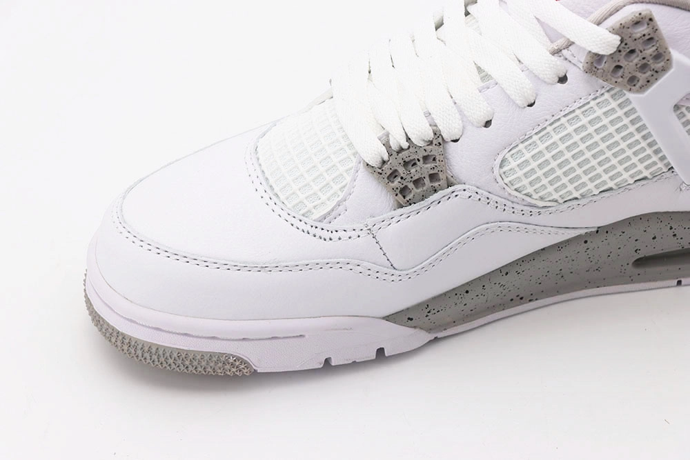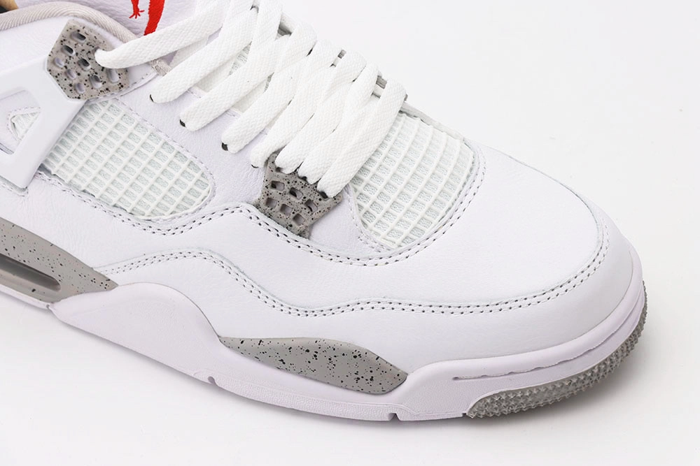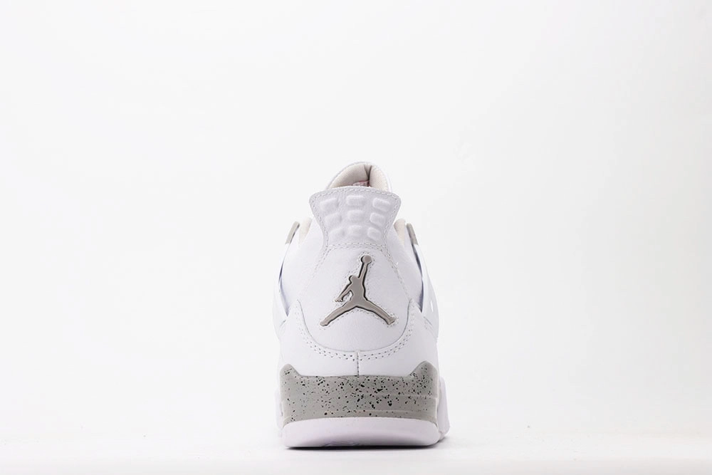 The Jordan 4 Retro White Oreo 2021 is a fresh take on the classic Oreo theme originally released in 1999. This sneaker features a clean white tumbled leather upper replacing the original black, complemented by speckled Tech Grey molded eyelets that maintain the iconic Oreo look. The midsole combines white and Tech Grey with encapsulated Air cushioning in the forefoot and a visible Air unit under the heel for comfort and style. A pop of Fire Red appears on the Jumpman logo on the tongue, adding a bold contrast to the neutral palette. The Jordan 4 Retro White Oreo 2021 blends premium materials with sharp details, making it a standout in the Air Jordan 4 lineup. This model is praised for its softer leather and comfortable fit compared to other Jordan 4 releases, appealing to both collectors and casual wearers. The Jordan 4 Retro White Oreo 2021 remains a sought-after sneaker for its unique colorway and nostalgic design elements.