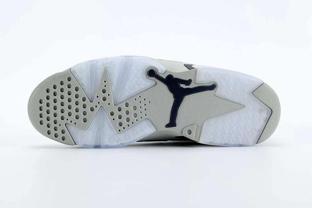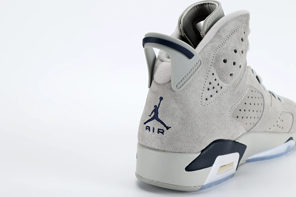 The Air Jordan 6 Georgetown continues the tradition of retro basketball shoes with a focus on premium suede materials, offering a luxurious feel and solid durability. This sneaker features a magnet gray suede upper complemented by college navy accents on the Jumpman logos, heel tab, and midsole, creating a clean and sophisticated look. The translucent blue outsole adds a unique touch, although it may yellow over time, which is common for such soles. The shoes cushioning is improved compared to earlier Jordan models, providing enhanced comfort and support for both casual wear and on-court performance. While the Jordan 6 Georgetown does not include extra laces, the gray laces it comes with match the overall color scheme perfectly. This sneaker is praised for its quality assurance, with many users noting excellent condition and craftsmanship upon release. Its design pays homage to Michael Jordans 1991 championship season, making it a nostalgic yet modern choice for sneaker collectors and basketball fans alike.
