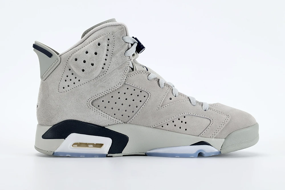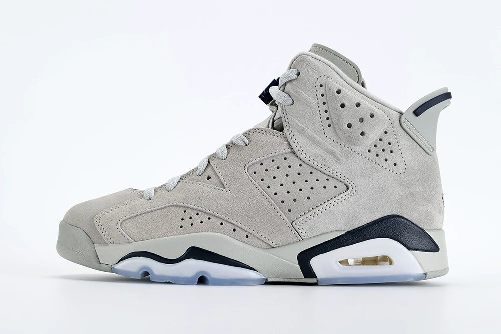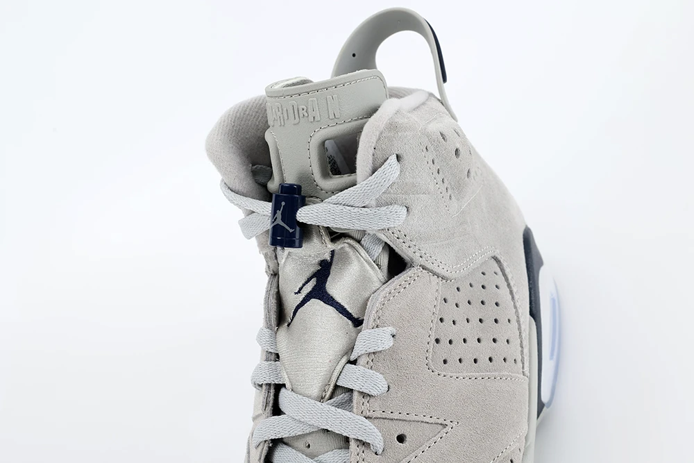 The Air Jordan 6 Georgetown stands out as a premium sneaker known for its best quality materials and craftsmanship. Released in September 2022, this model features a rich suede upper in magnet gray and college navy, reflecting the iconic Georgetown Hoyas colors. The suede used on the Jordan 6 Georgetown is notably soft and durable, offering both comfort and style. The sneaker maintains the classic Air Jordan 6 silhouette, enhanced with a translucent blue sole and navy blue Jumpman logos, emphasizing its high-quality design. Collectors and sneaker enthusiasts praise the Jordan 6 Georgetown best quality for its attention to detail, solid construction, and nostalgic appeal, making it a must-have for fans of the brand and basketball history. This shoe perfectly balances performance and aesthetics, embodying the legacy of Michael Jordans first championship season while delivering premium materials and build quality that justify its status as one of the best Jordan 6 releases.