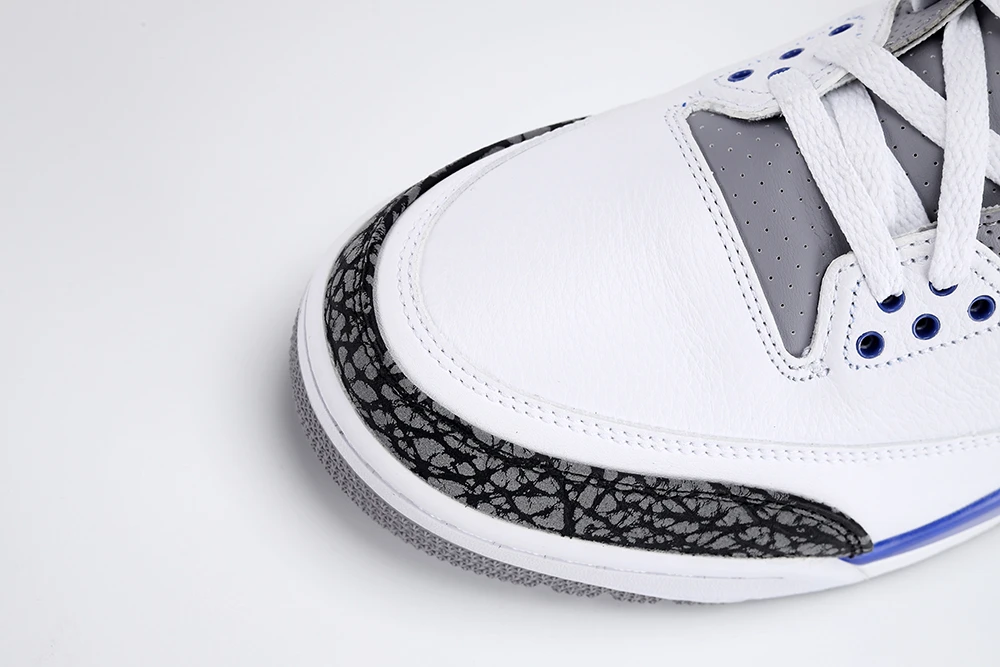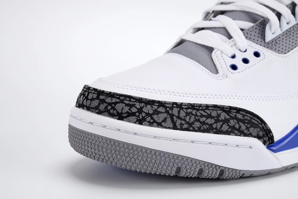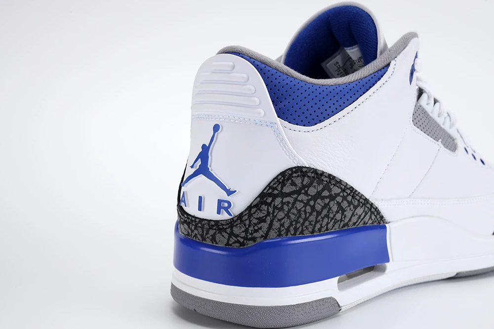 The Jordan Retro 3 Blue White variant offers a fresh twist on the classic silhouette, combining blue and white tones for a clean, eye-catching look. Known also as the Jordan Blue Retro 3, this sneaker maintains the signature elephant print and visible Nike Air cushioning that fans love. The Jordan 3’s Blue colorway is celebrated for its vibrant yet versatile style, making it easy to pair with various outfits. The blue and white Jordan Retro 3 is particularly popular for its balanced color scheme that highlights the shoe’s design details. Another sought-after version is the Jordan 3 Racer Blue, which features a polyurethane midsole with encapsulated and visible Air units, enhancing comfort and impact protection. Each of these variations stays true to the original Air Jordan 3 heritage while offering unique color accents that appeal to collectors and casual wearers alike.