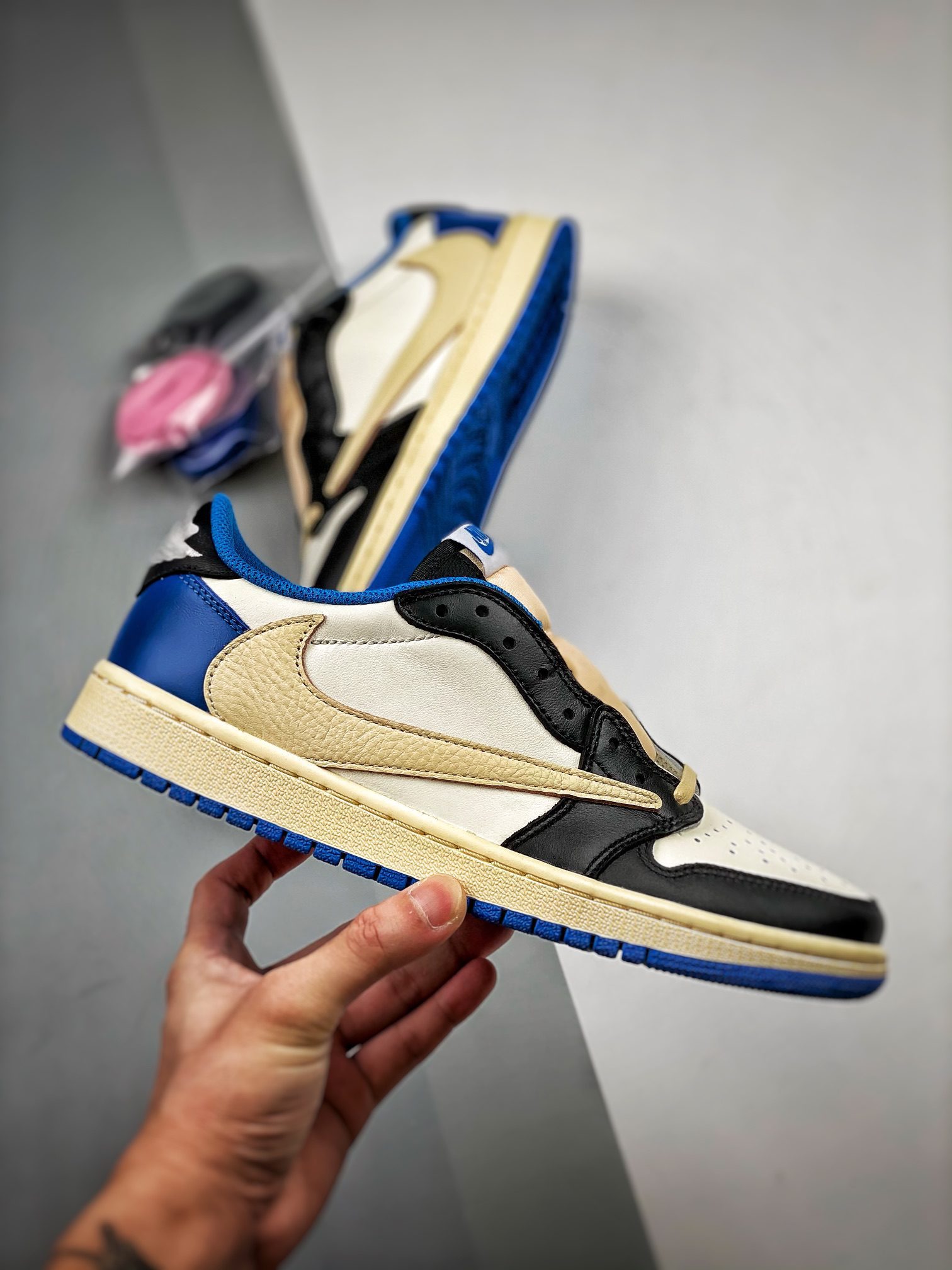 The Fragment Design x Travis Scott x Air Jordan 1 Retro Low is a lifestyle sneaker that blends the creative visions of two influential figures in streetwear and sneaker culture. Crafted with premium leather and featuring a military blue colorway, these shoes offer a fresh take on the classic Air Jordan 1 silhouette. The collaboration highlights include the Cactus Jack logo on one heel and the Fragment Design logo on the other, symbolizing the partnership. Authenticity is key with this model, as replica versions can be identified by differences in text thickness and logo placement. The sneaker is available in family sizing, including kid sizes, ensuring that fans of all ages can enjoy this exclusive design. With a retail price around $150 and a release date in late 2025, these sneakers are both a collector’s item and a stylish choice for everyday wear. Verified authentic pairs come with certificates and detailed photos to guarantee quality and legitimacy.