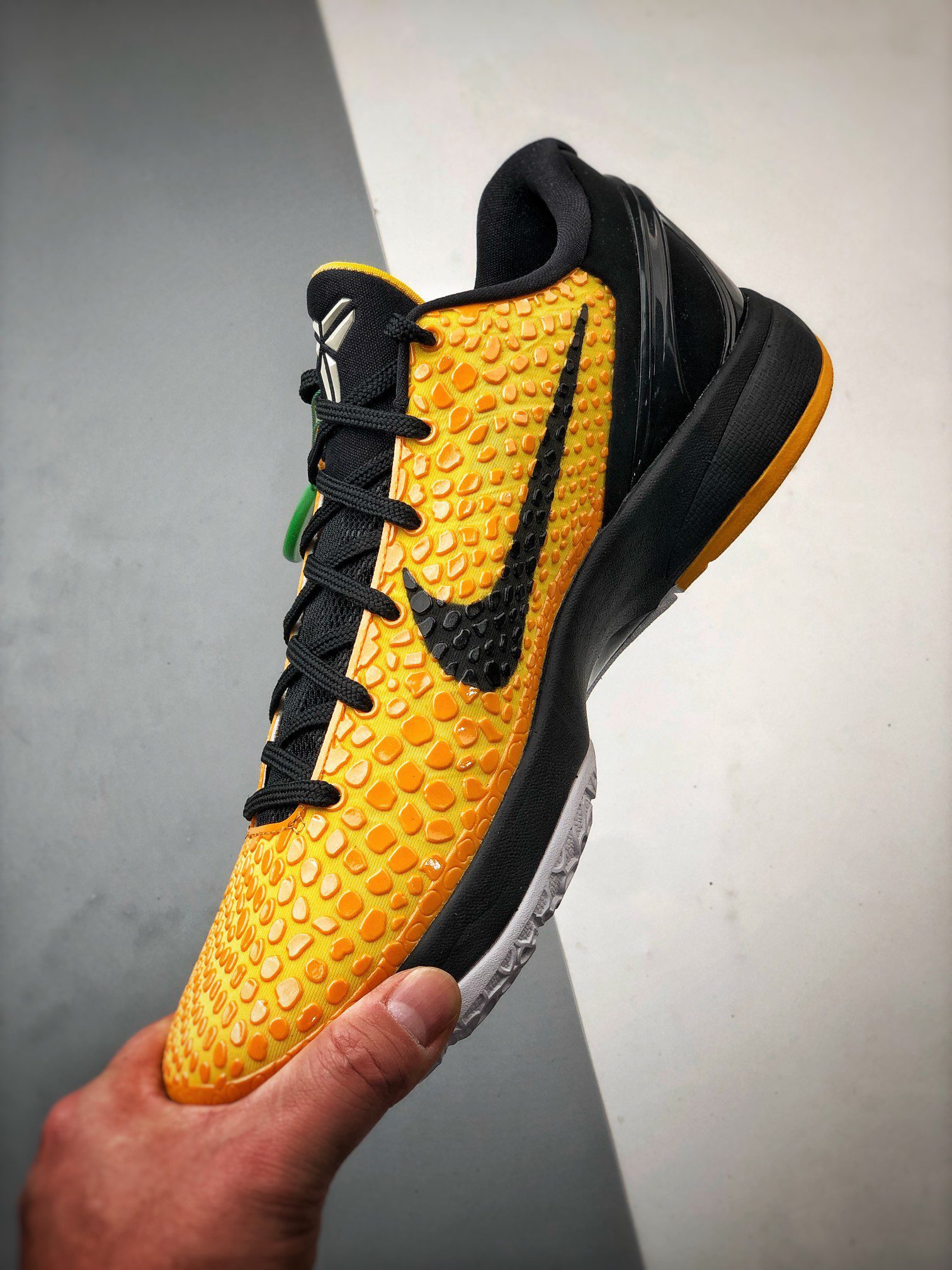 The Lightbulb Kobe 6 is a special edition within the Nike Kobe 6 lineup, celebrated for its vibrant Laker yellow colorway and premium materials. The upper’s snakeskin texture adds a luxurious feel, while the carbon fiber outsole enhances durability and traction. This combination makes the Nike Kobe 6 Lightbulb not only visually striking but also highly functional for basketball performance. Fans appreciate the subtle Kobe signature details embedded throughout the shoe, including his sheath symbol and the iconic Black Mamba theme that runs through the Kobe 6 series. Released originally in 2010 and reintroduced in Protro form, the Lightbulb Kobe 6 continues to capture attention with its blend of heritage and modern sneaker technology. Whether worn on court or as a collectors piece, the Nike Kobe 6 Lightbulb stands out for its bold design and connection to Kobe Bryants legendary career.