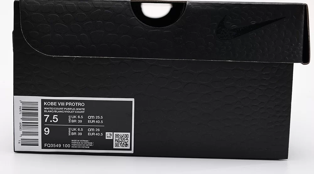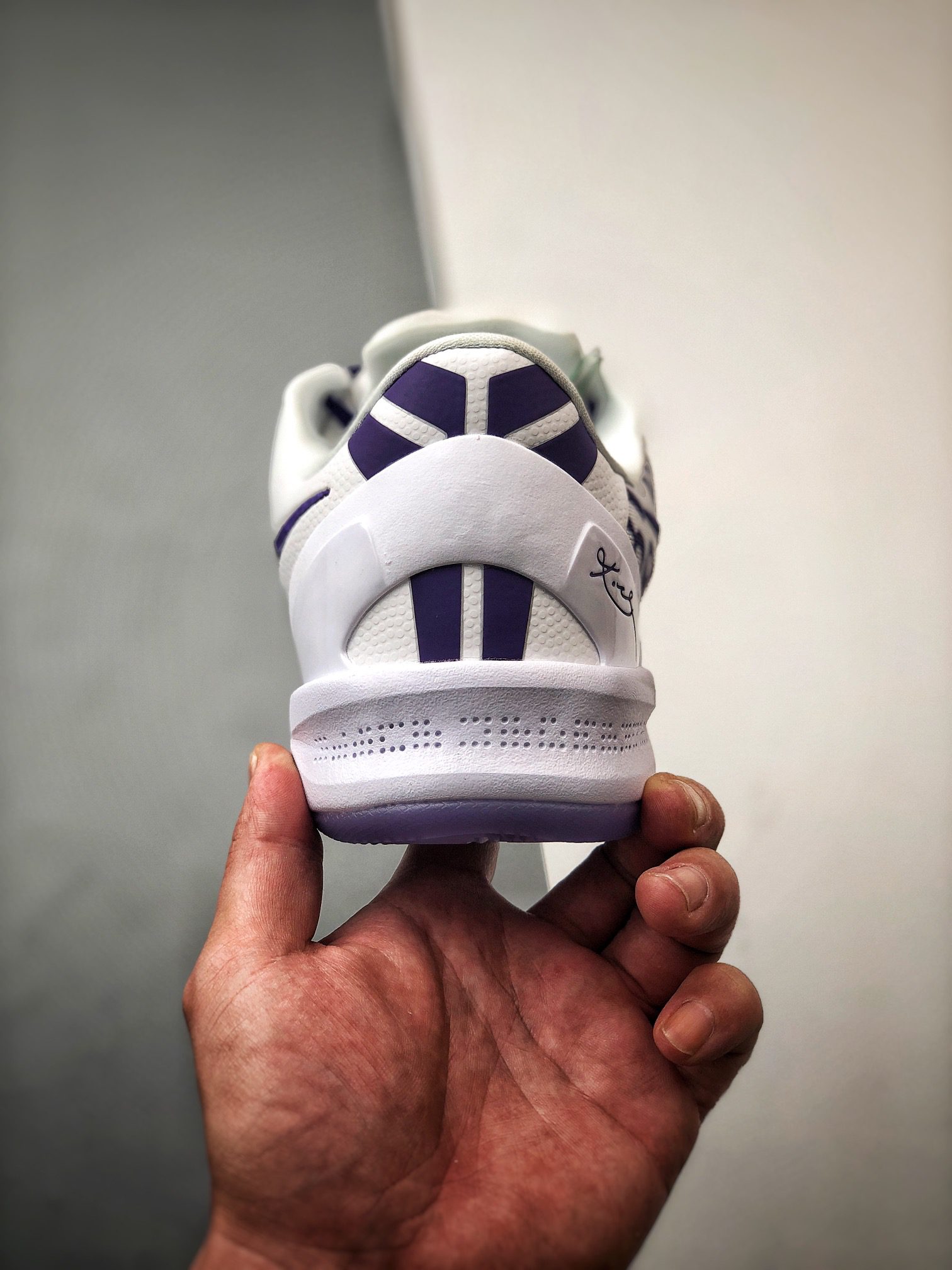 The Nike Kobe 8 Protro Court Purple is part of the celebrated Kobe 8 Protro line, known for updating classic Kobe models with modern technology. The ‘court purple’ colorway pays homage to the Lakers, featuring a clean white base with purple accents and Kobes signature logos. The sneakers React foam midsole replaces the original Lunarlon foam, offering improved cushioning and responsiveness. A carbon fiber plate embedded in the midsole enhances stability and support during quick cuts and jumps. The outsole is semi-translucent purple, adding both style and traction. The shoe also features multiple Kobe insignias, including his signature and the Mamba logo, emphasizing its authenticity and connection to the legend. The Kobe 8 Protro Court Purple GS version offers a grade school sizing option, making it accessible for younger fans and players. Overall, this sneaker blends heritage design with contemporary performance, making it ideal for both on-court use and casual wear.