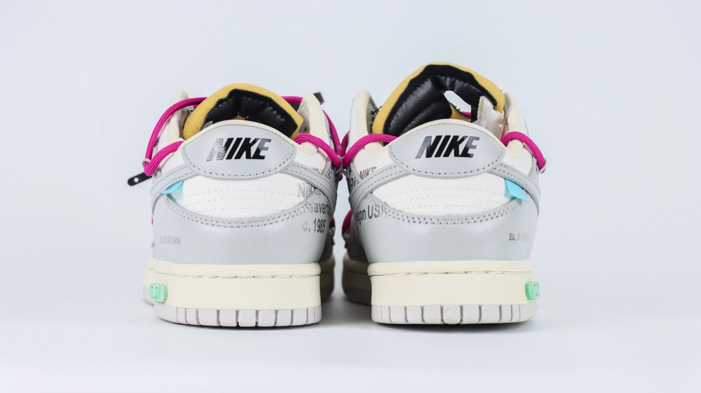 The Nike Dunk Low Off-White Lot 30 is part of the celebrated “Lot 50” series, which showcases 50 unique colorways crafted by Virgil Abloh. Known for its sail leather upper and gray suede overlays, the sneaker also features a striking light blue secondary lace system that adds a pop of color and customization options. The Nike Dunk Off White Lot 30 incorporates Off-Whites signature design cues, including the exposed foam tongue, zip tie, and Helvetica branding, which are hallmarks of the collaboration. Collectors often refer to this model as the Off White Dunk Low Lot 30 of 50, emphasizing its place within the limited series. The combination of premium materials and thoughtful design makes the Nike Off White Dunk Lot 30 a versatile and stylish choice for sneakerheads. Whether worn casually or added to a collection, the Off White Dunks 30 of 50 stand out for their craftsmanship and exclusivity.