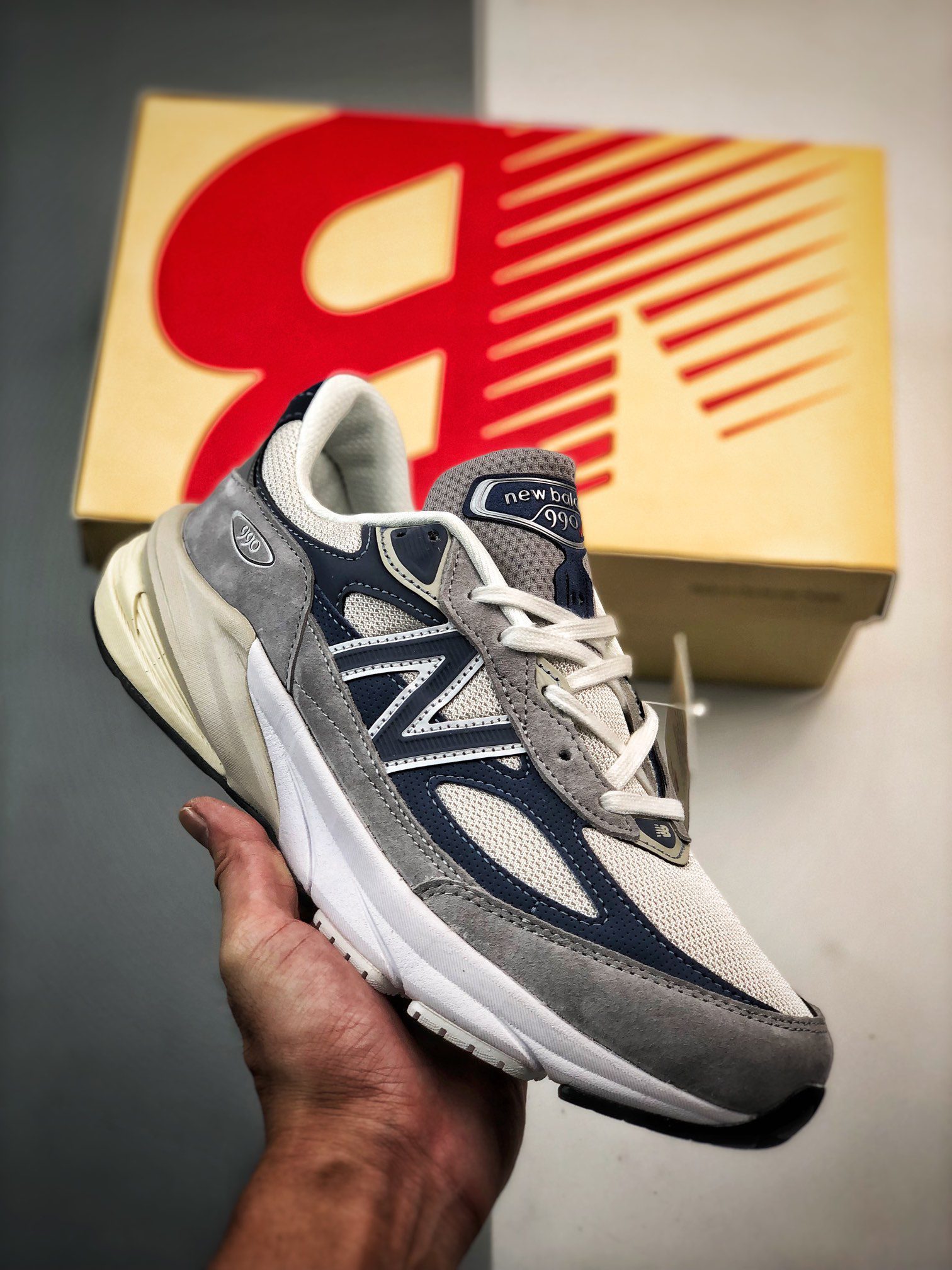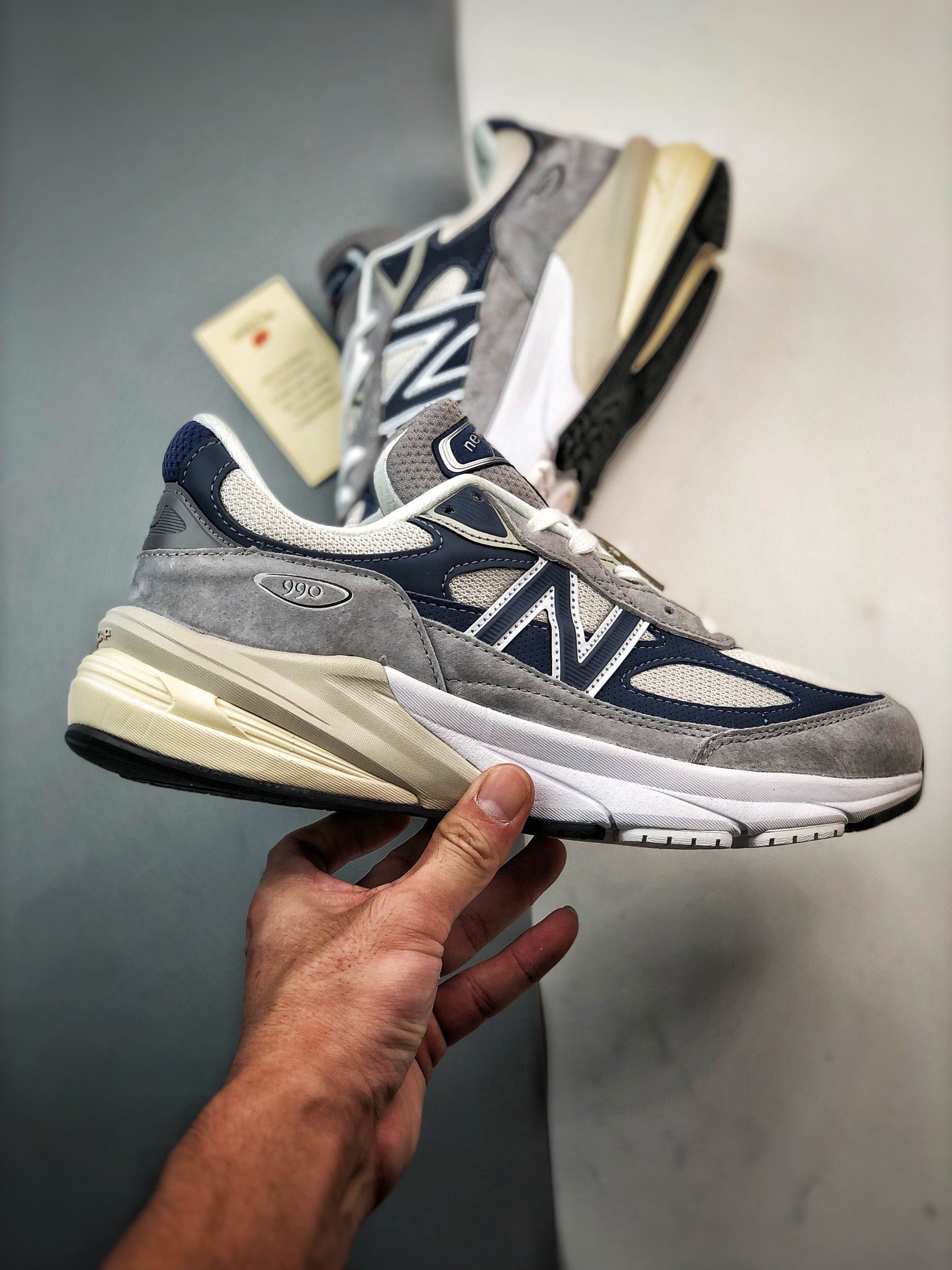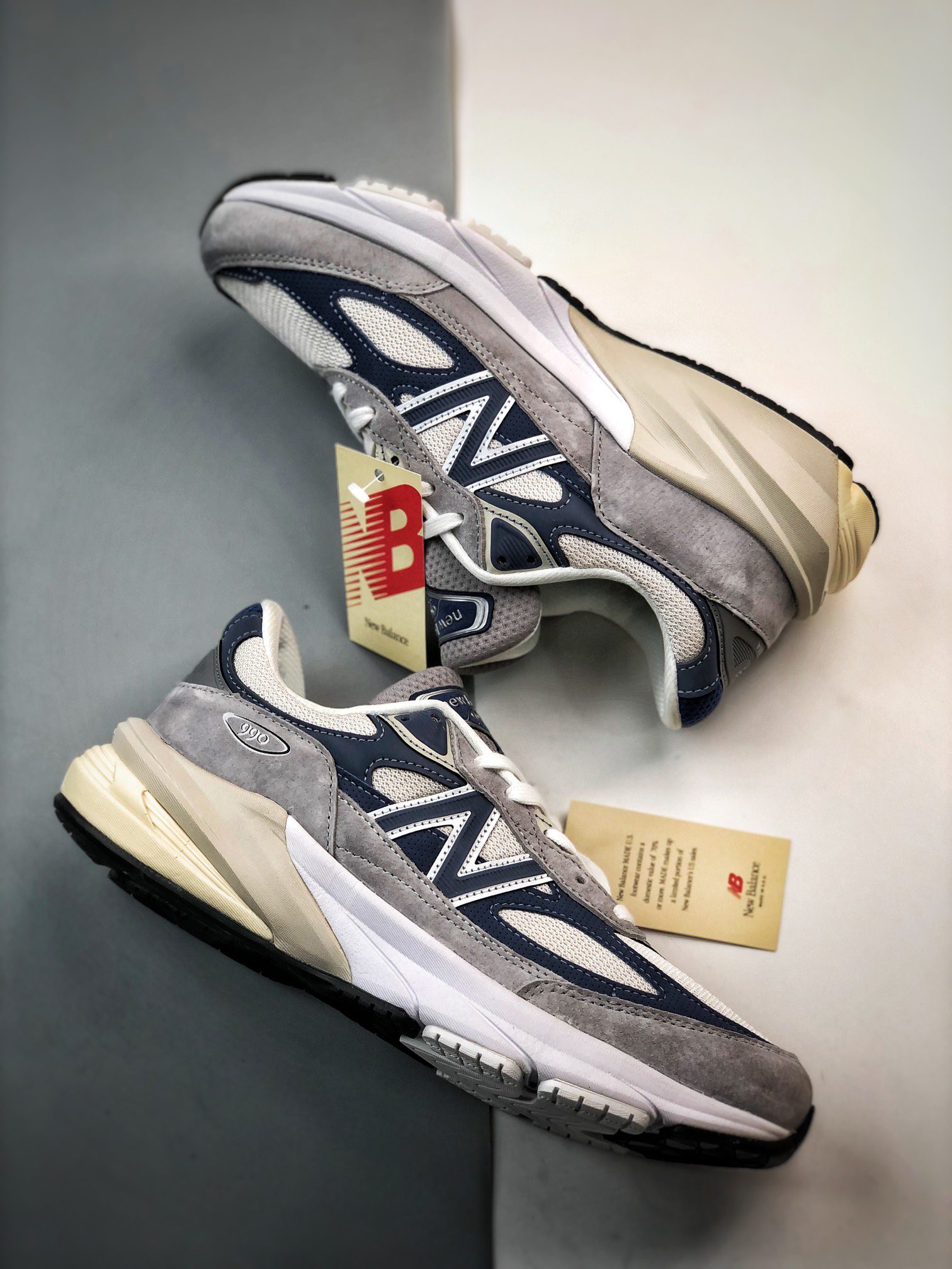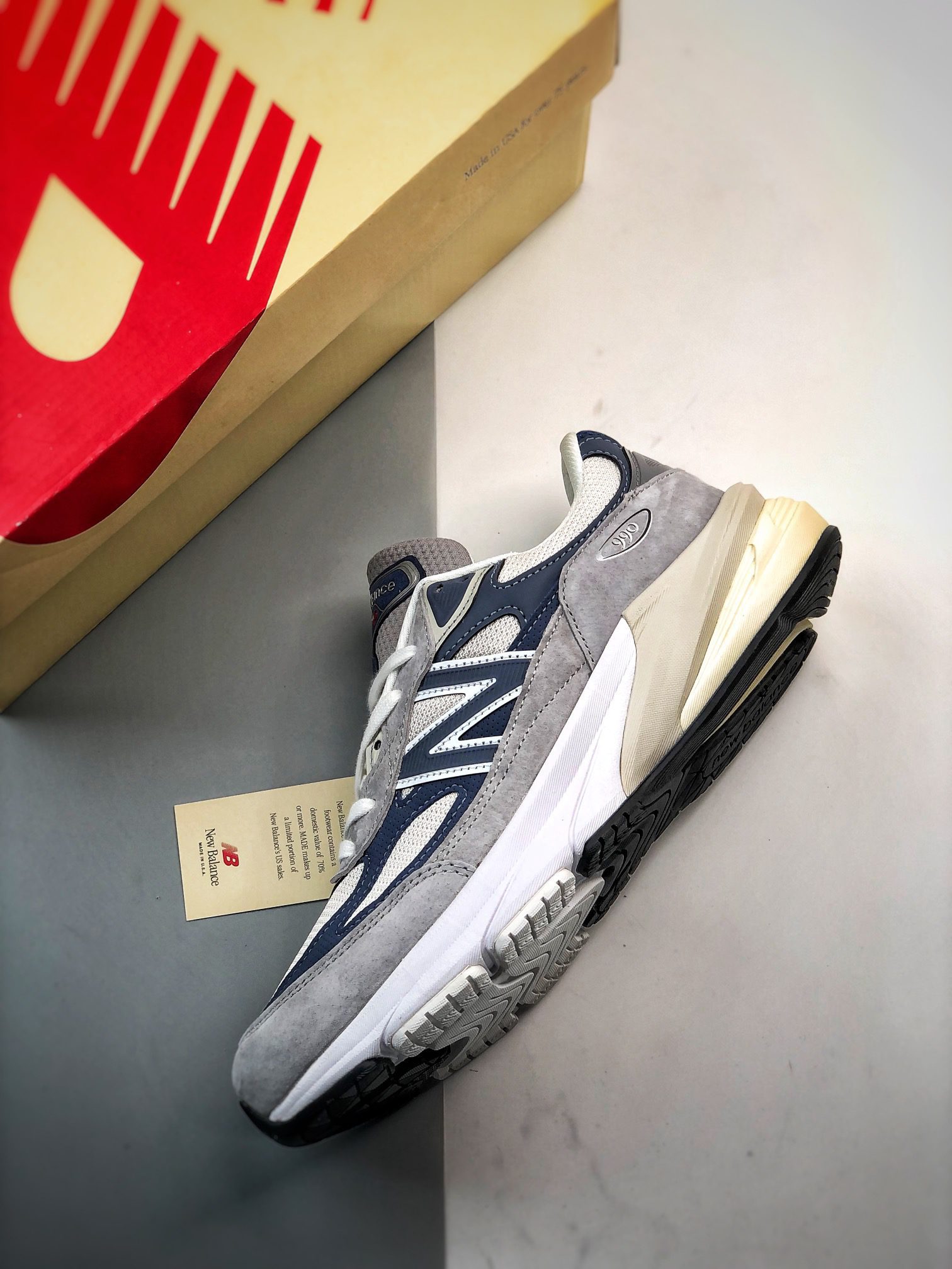 The New Balance 990v6 Made in USA Grey Day edition offers a premium blend of style, comfort, and performance. Featuring a mix of pig suede, leather, and breathable mesh panels, this sneaker balances durability with ventilation, making it ideal for all-day wear. The Grey Day colorway combines subtle grey tones with navy blue accents, creating a versatile look that pairs well with various outfits. Underfoot, the signature FuelCell foam midsole provides a propulsive feel, while the ENCAP cushioning system adds stability and support. Despite its chunky appearance, the 990v6 is surprisingly lightweight at just 12.9 ounces, ensuring comfort without feeling bulky. This sneaker is a standout in the New Balance Made in USA line, celebrated for its craftsmanship and premium materials. The New Balance 990v6 Made in USA Grey Day is perfect for sneaker enthusiasts seeking a blend of heritage and modern technology, making it a must-have for any collection.
